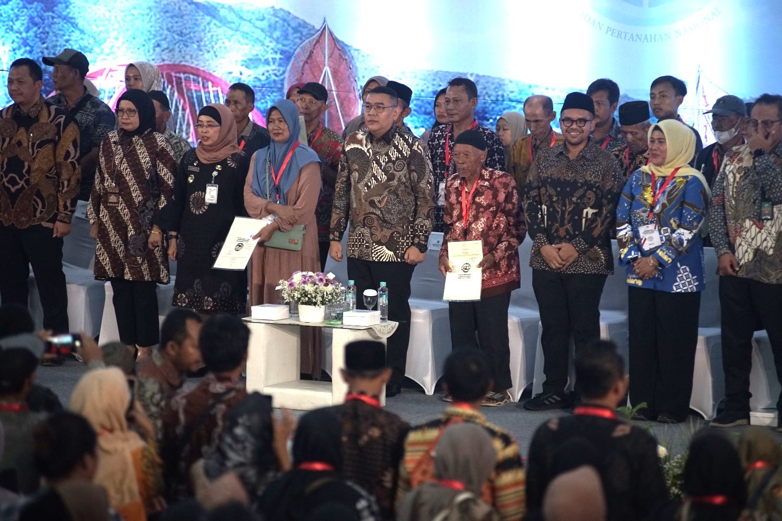 Batang – Wajah penuh kebahagiaan terpancar dari ribuan warga yang memadati Gor Indoor Abirawa Batang. Hari itu menjadi momen bersejarah bagi mereka, saat Wakil Menteri Agraria dan Tata Ruang/Badan Pertanahan Nasional (ATR/BPN) Ossy Dermawan, secara simbolis menyerahkan sertifikat tanah kepada sepuluh warga sebagai bagian dari program Pendaftaran Tanah Sistematis Lengkap (PTSL). Total 1.500 sertifikat tanah hak milik didistribusikan kepada masyarakat Kabupaten Batang.