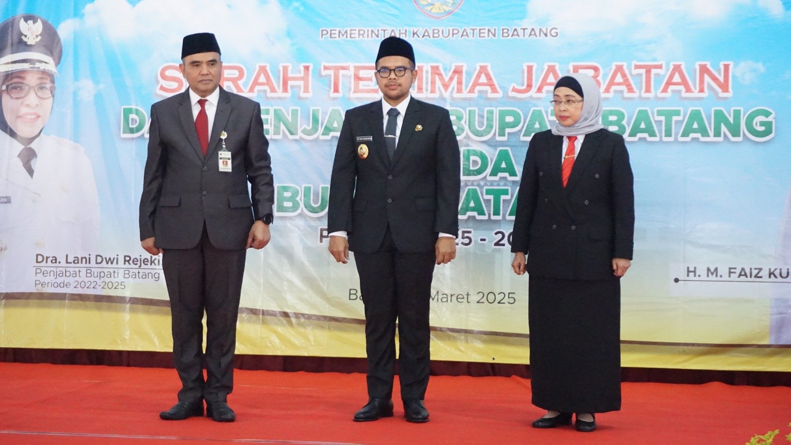Batang – Pasca menjalani retreat Bupati Batang M. Faiz Kurniawan bersama Wakil Bupati Suyono, akhirnya resmi menjalankan tugas sebagai kepala daerah. Prosesi tersebut ditandai dengan serah terima jabatan (Sertijab) dari Penjabat Bupati Lani Dwi Rejeki kepada Bupati M. Faiz Kurniawan.