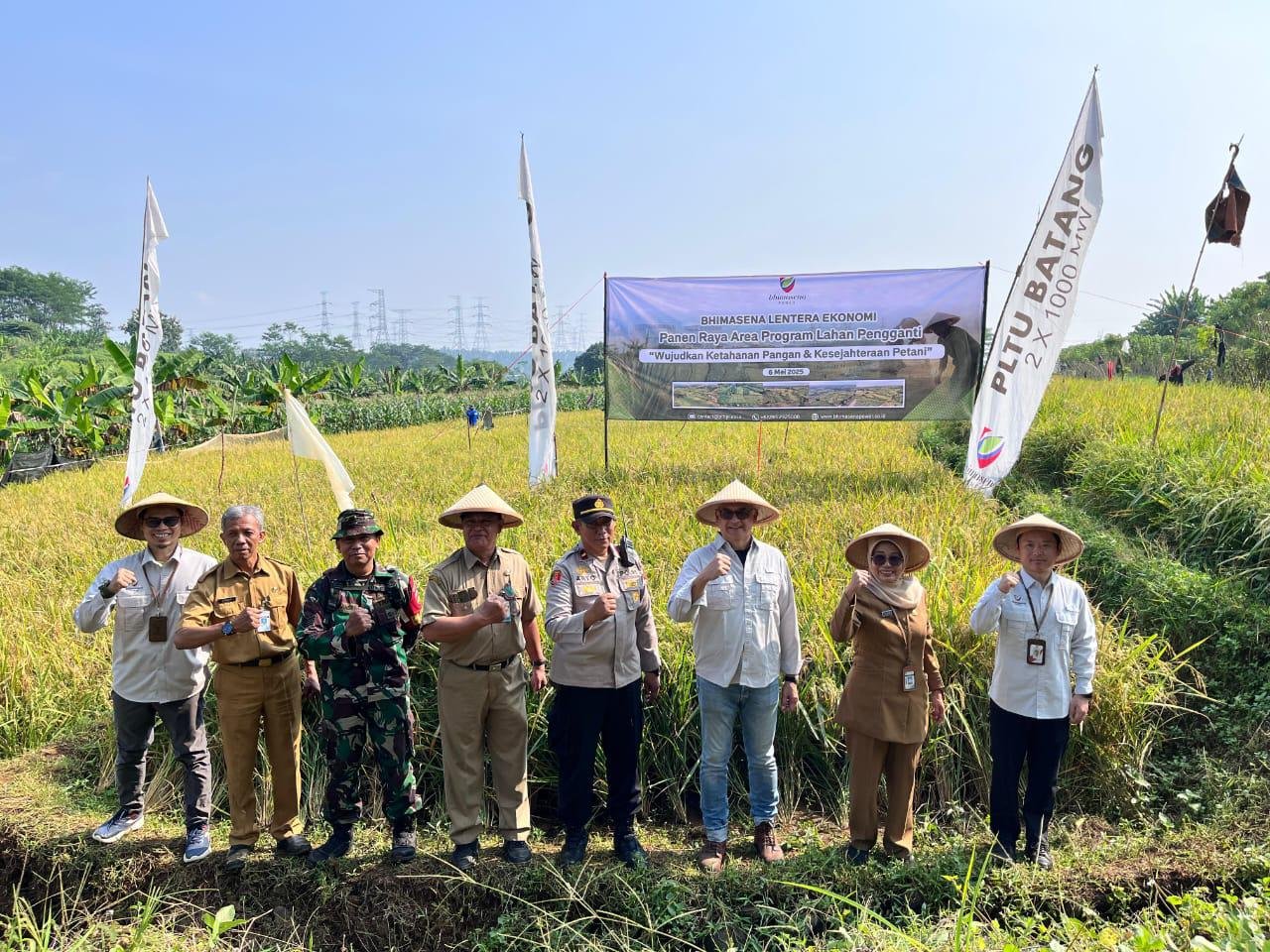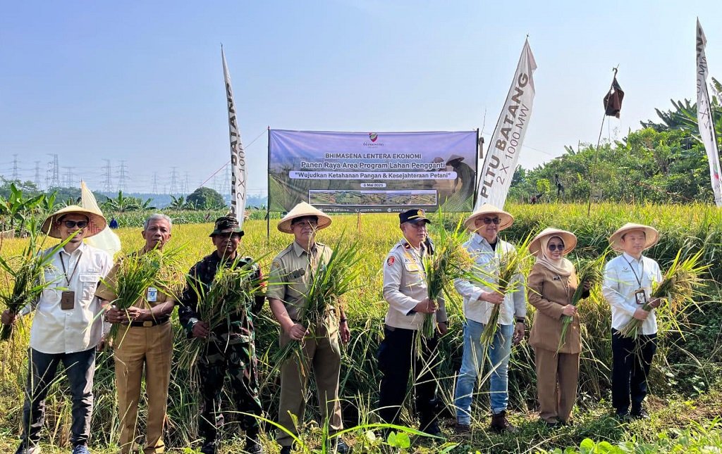 Batang – PT Bhimasena Power Indonesia (BPI) bersama Dinas Pangan dan Pertanian (Dispaperta) Batang menggelar Panen Raya Padi di area Lahan Pengganti, Desa Sembojo, Kabupaten Batang, Selasa (6/5/2025).