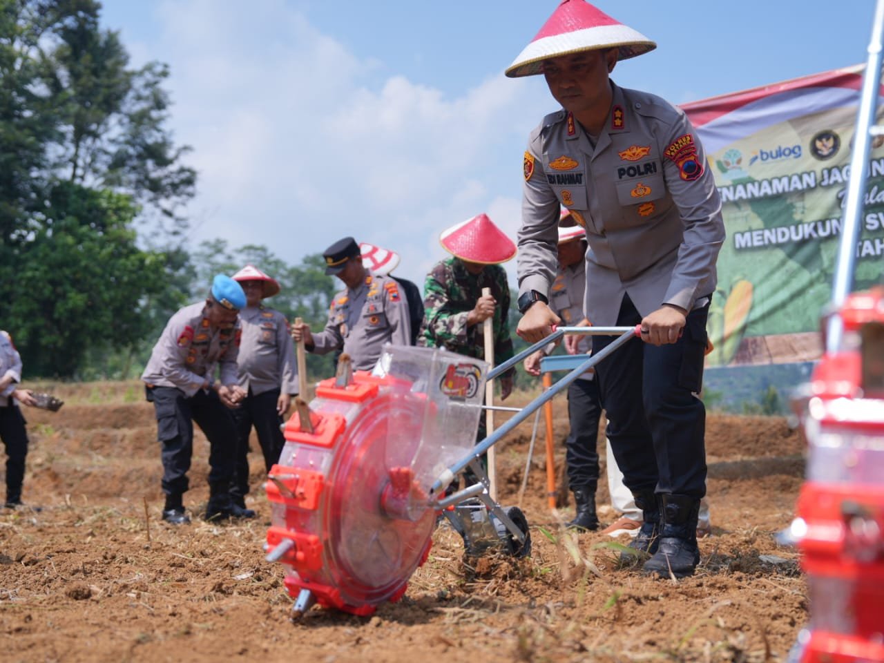 “Inti dari kegiatan adalah seremonial penanaman jagung, yang dilanjutkan dengan pemberian bantuan benih bibit jagung hibrida kepada Gapoktan Desa Blado,” ujar Kapolres.