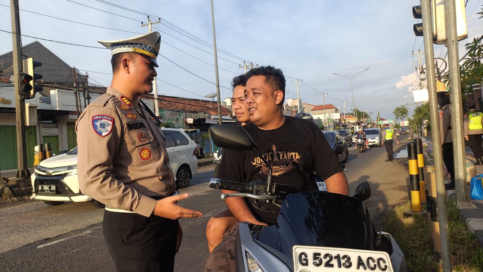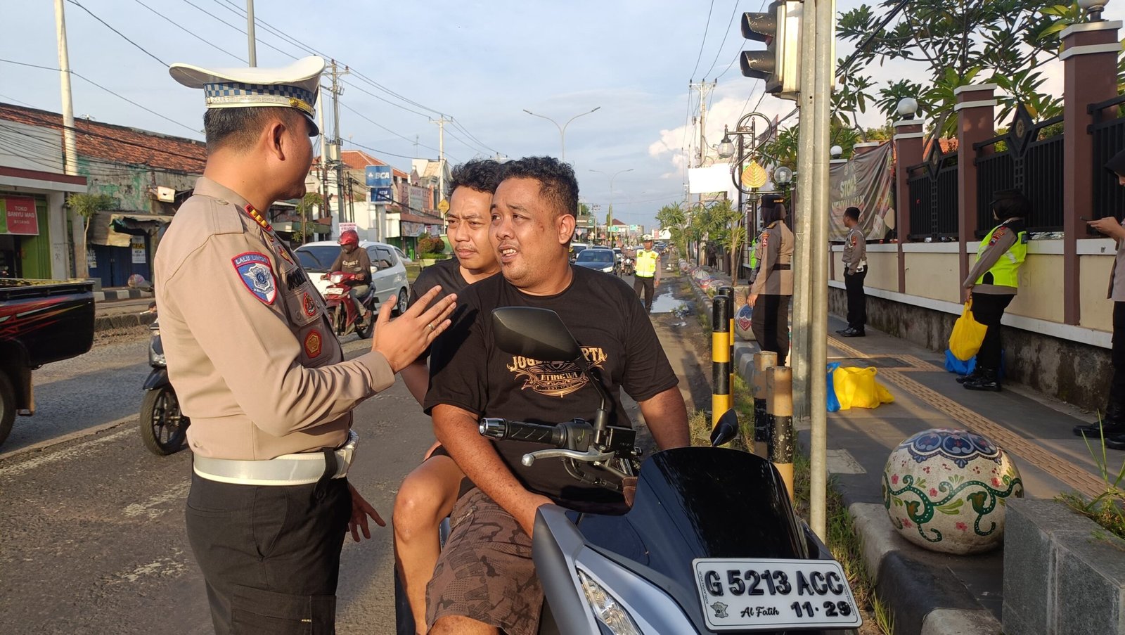 Kasatlantas Polres Batang, AKP Ahmad Zainurrosaq, yang memimpin razia, menanyai pengendara dengan nada lembut.