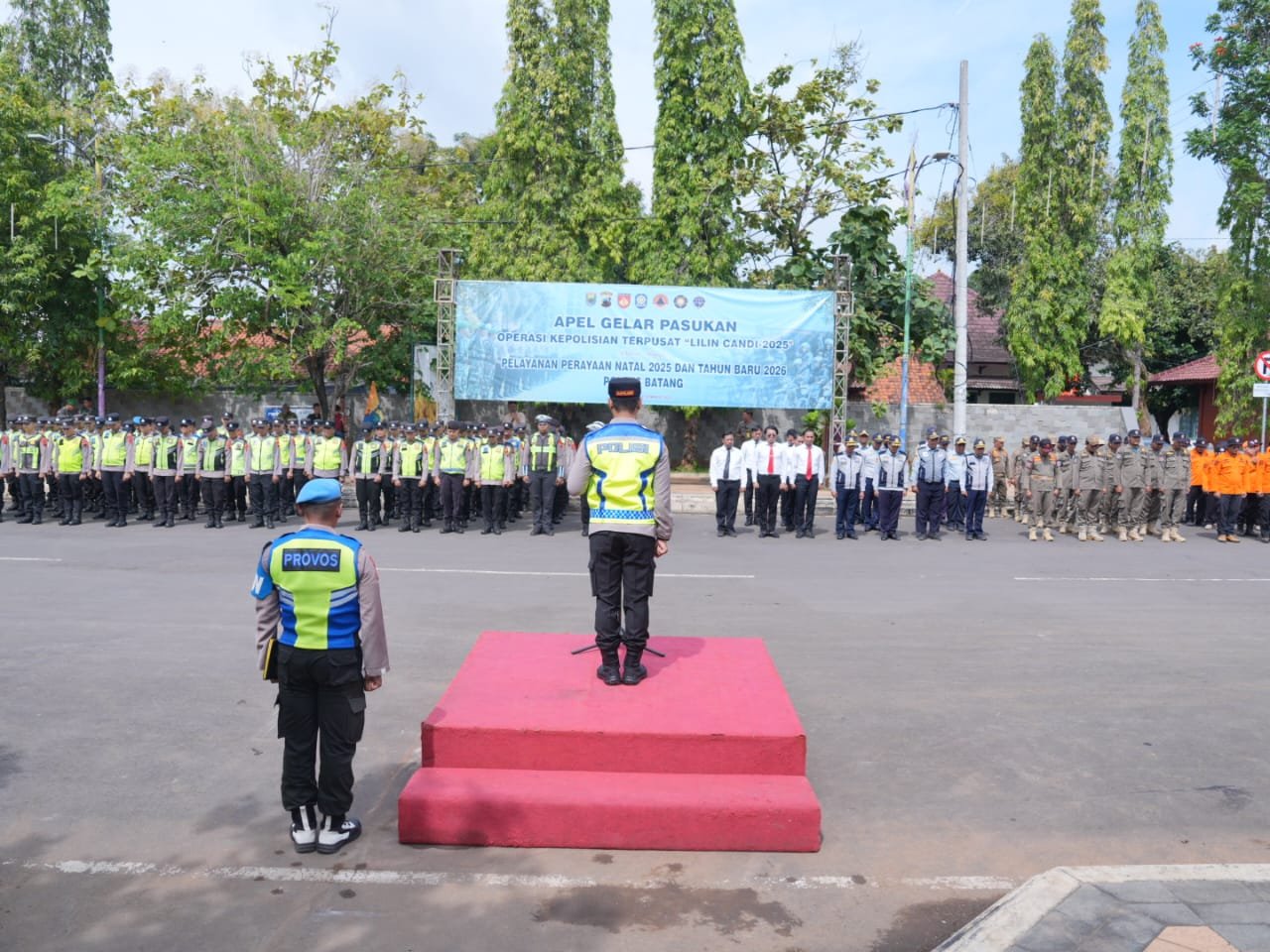 Apel digelar di Jalan Veteran, Kabupaten Batang, Jumat, 19 Desember 2025. Sejumlah personel kepolisian, TNI, pemerintah daerah, hingga unsur pendukung lainnya turut dilibatkan. Fokus utama apel ini adalah memastikan kesiapan sumber daya manusia, sarana, dan prasarana agar masyarakat dapat merayakan Natal dan Tahun Baru dengan aman serta nyaman.
