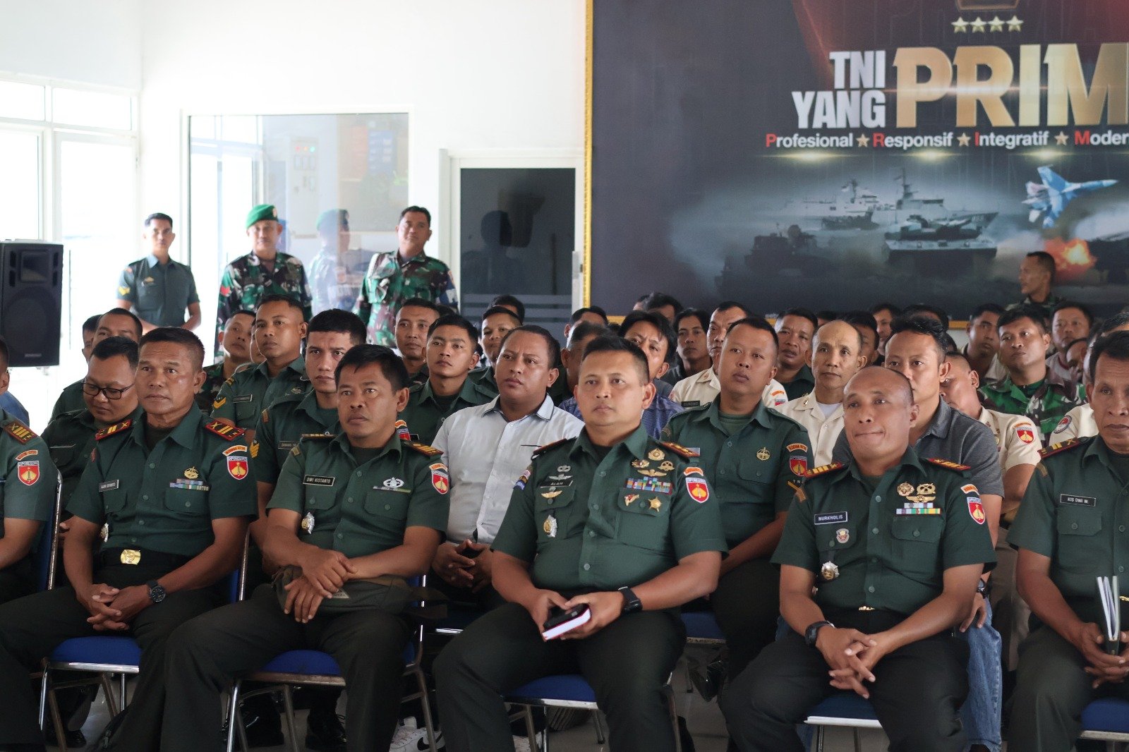 Batang, – Dandim 0736 Batang Letkol Inf Ahmad Alam Budiman didampingi Kastaf Mayor Inf Slamet Muchadi bersama Perwira Staf, Anggota Militer maupun PNS jajaran gelar nonton bareng film The East bertempat di Aula Makodim Jln. Jenderal Sudirman No. 41 Kelurahan Kasepuhan Batang. Kamis ( 18/7/24 ).