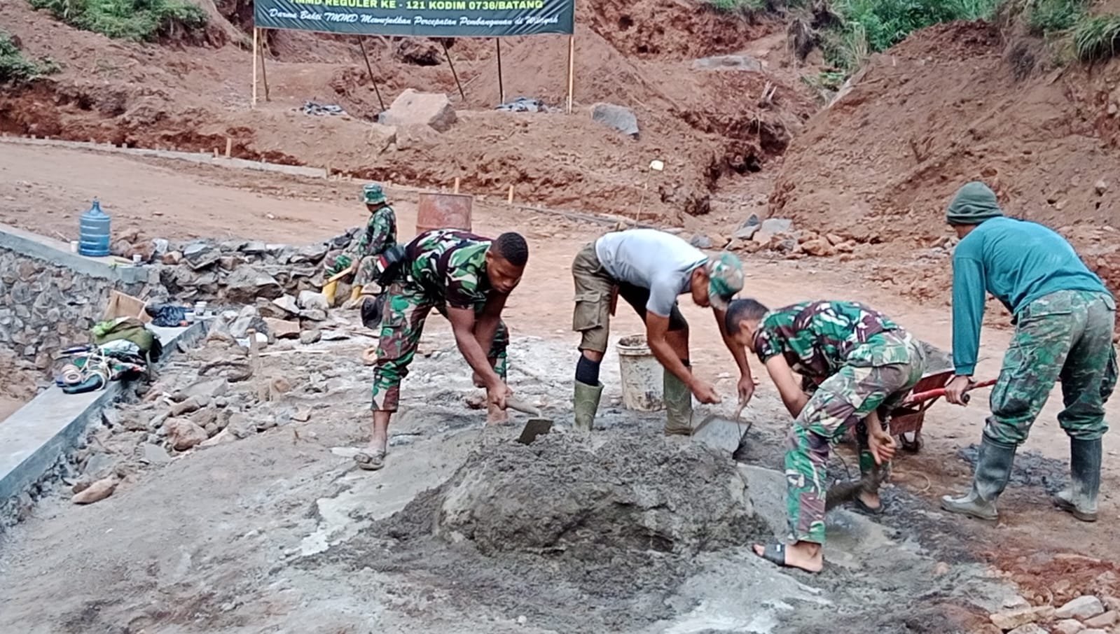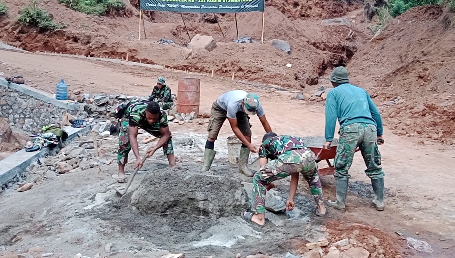 Batang,- Penutupan TNI Manunggal Membangun Desa (TMMD) Reguler Ke 121 Kodim 0736/Batang rencana ditutup tanggal 22 Agustus mendatang. Guna mengejar target yang telah diprogramkan dalam agenda TMMD Reguler, baik sasaran fisik maupun sasaran non fisik, tampat terlihat anggota Satgas bersama warga desa Pacet terus berjibaku bekerja keras untuk mengejar target penyelesaian sejumlah sasaran fisik yang diprogramkan. Minggu (18/08/24).