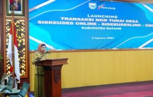 Batang – Dinas Pemberdayaan Masyarakat dan Desa (Dispermades) Batang meresmikan transaksi non tunai desa melalui siskeudes online – siskeudeslink – CMS dari Bank Jateng di Aula Bupati Batang, Kabupaten Batang, Senin (5/8/2024).