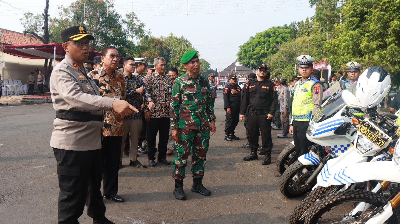Usai apel, AKBP Cahyo bersama unsur Forkopimda melakukan pengecekan kendaraan dan infrastruktur penunjang lainnya. Mereka juga akan menyisir seluruh wilayah untuk memastikan keamanan dan kelancaran jalannya pesta demokrasi.