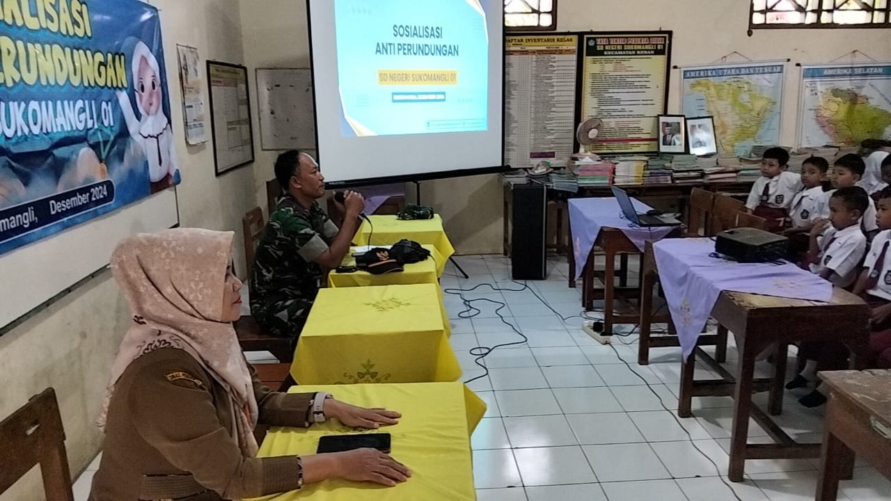 Batang,- Bullying (tindakan kekerasan) memiliki pengaruh secara jangka panjang dan jangka pendek terhadap korban bullying. Sebagai upaya mencegah tindakan bullying di sekolah SD Negeri Sukomangli Kecamatan Reban, pagi tadi Babinsa dari Koramil 05/Reban Kodim 0736/Batang Peltu Muhamad Syaefudin mengadakan Sosialisasi anti bullying ke siswa-siswi SD Negeri Sukomangli. Senin (16/12/24).