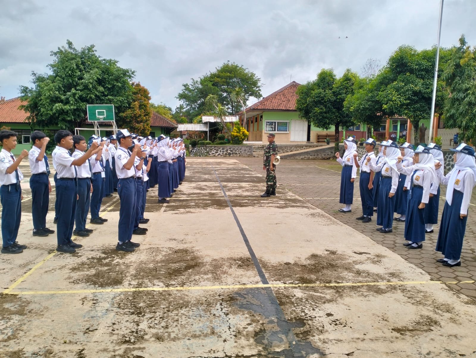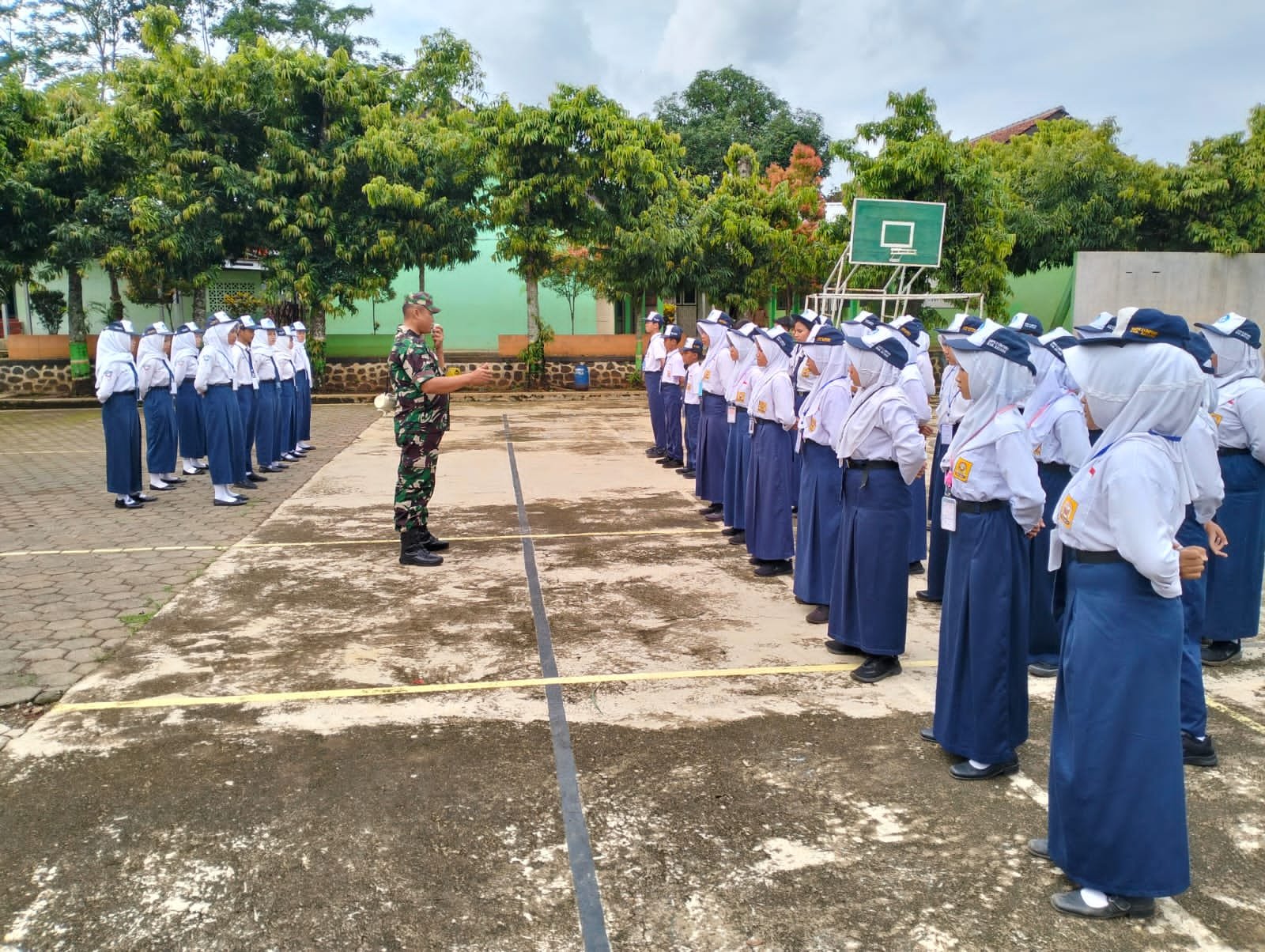 Batang,- Peran Babinsa bukan hanya dalam membina desa, namun juga dapat berperan dalam memberikan pelatihan di sekolah-sekolah wilayah binaan. Seperti yang dilakukan oleh salah satu anggota Babinsa dari Koramil 02/Limpung Kodim 0736/Batang Peltu Haryanto, selain menjaga kondusifitas desa binaan agar tetap kondusif “Ia” juga melaksanakan kegiatan Pembinaan Ketahanan Wilayah (Bintahwil) dengan cara memberikan pelajaran Peraturan Baris Berbaris (PBB) pada Siswa SMPN 2 Limpung ,Kabupaten Batang. Selasa, (17/12/2024).