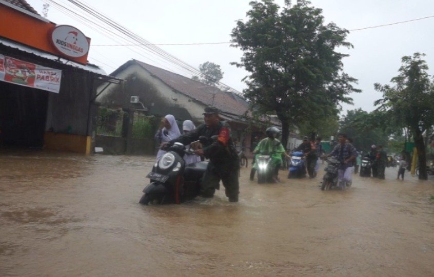Akibat banjir ini, Anggota dari Koramil 10/Batang Kodim 0736/Batang yang dipimpin Peltu Meri Setiawan turun langsung kejalan karena banyak dari kendaraan warga yang mogok saat menerjang genangan air.