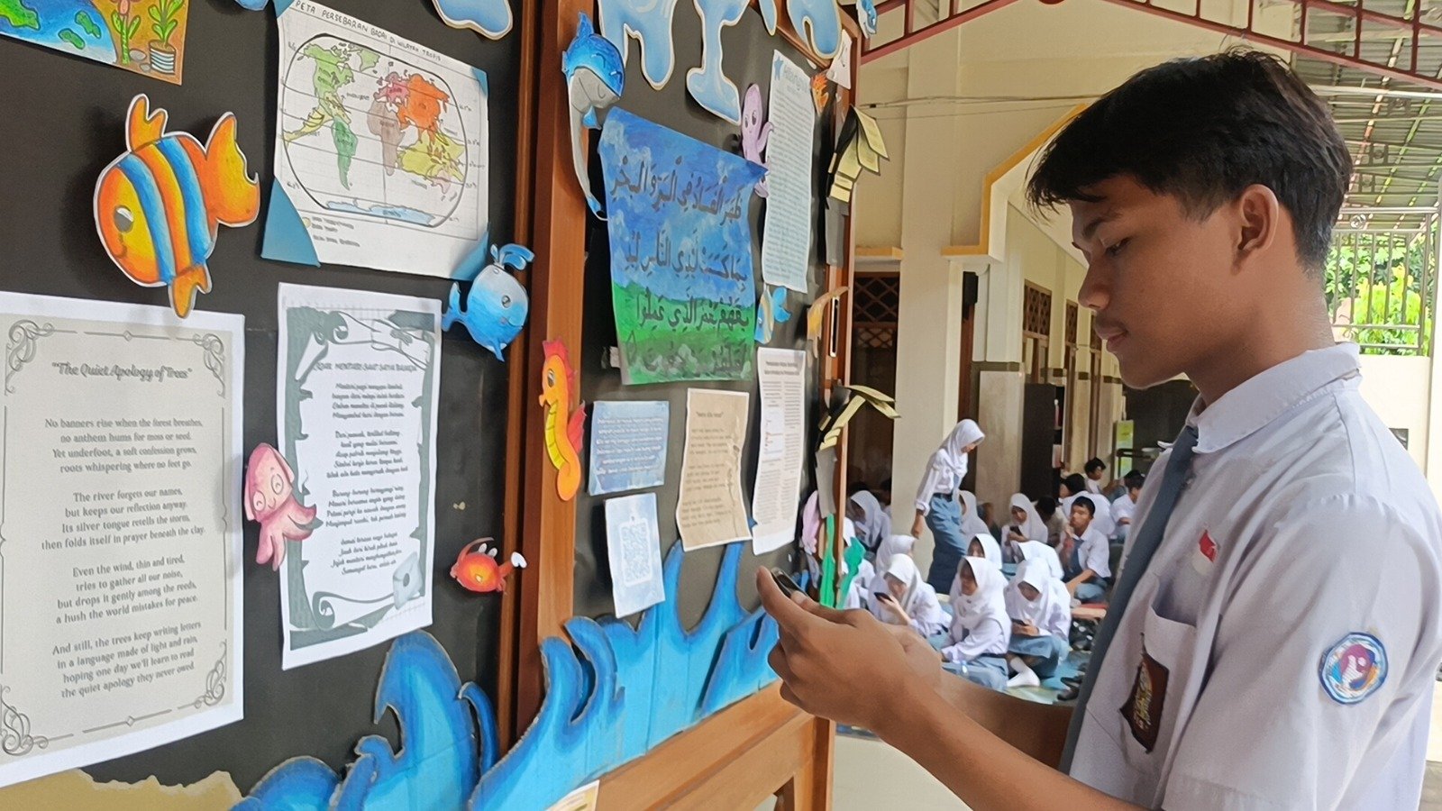 Salah satu siswa, Lifely mengutarakan, tema Mading yang diusunh kelompoknya seputar kebersihan dan keindahan bahari, yang mengedepankan ornamen bertema laut Nusantara. Lewat Mading, ia bersama tim tidak hanya belajar seputar ragam sastra saja, namun berusaha memberikan informasi yang edukatif kepada pembaca.