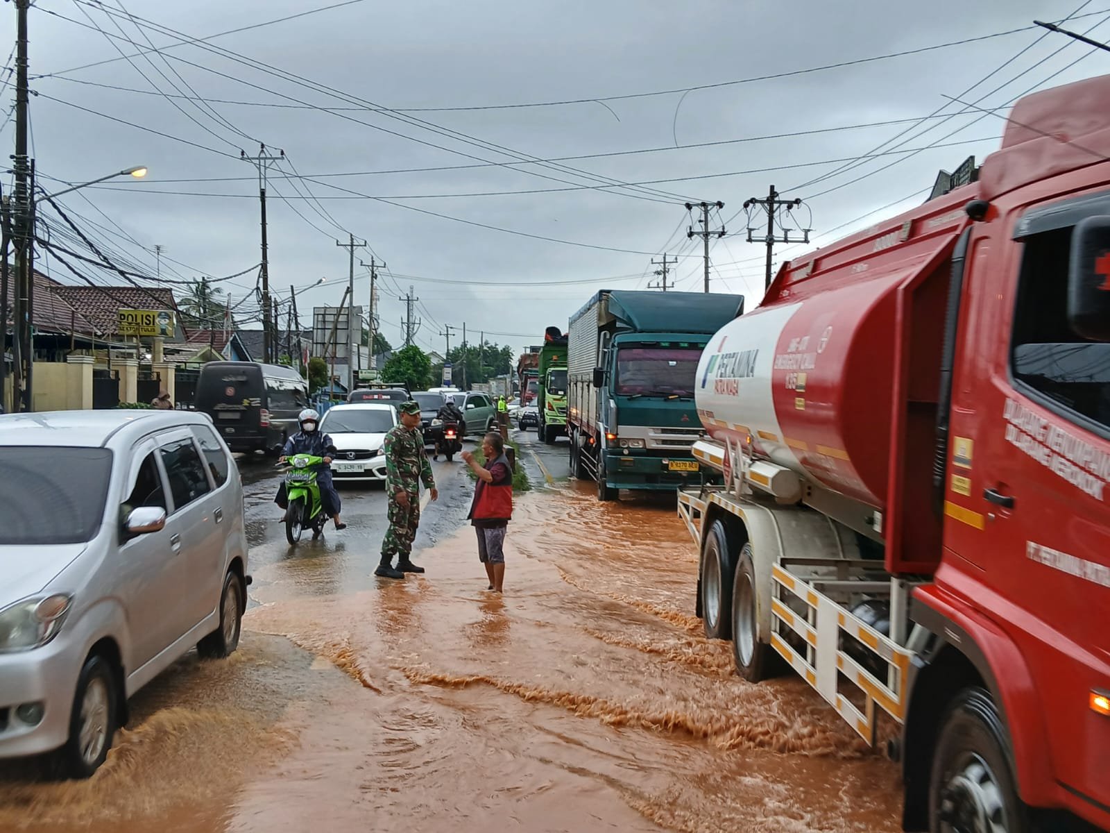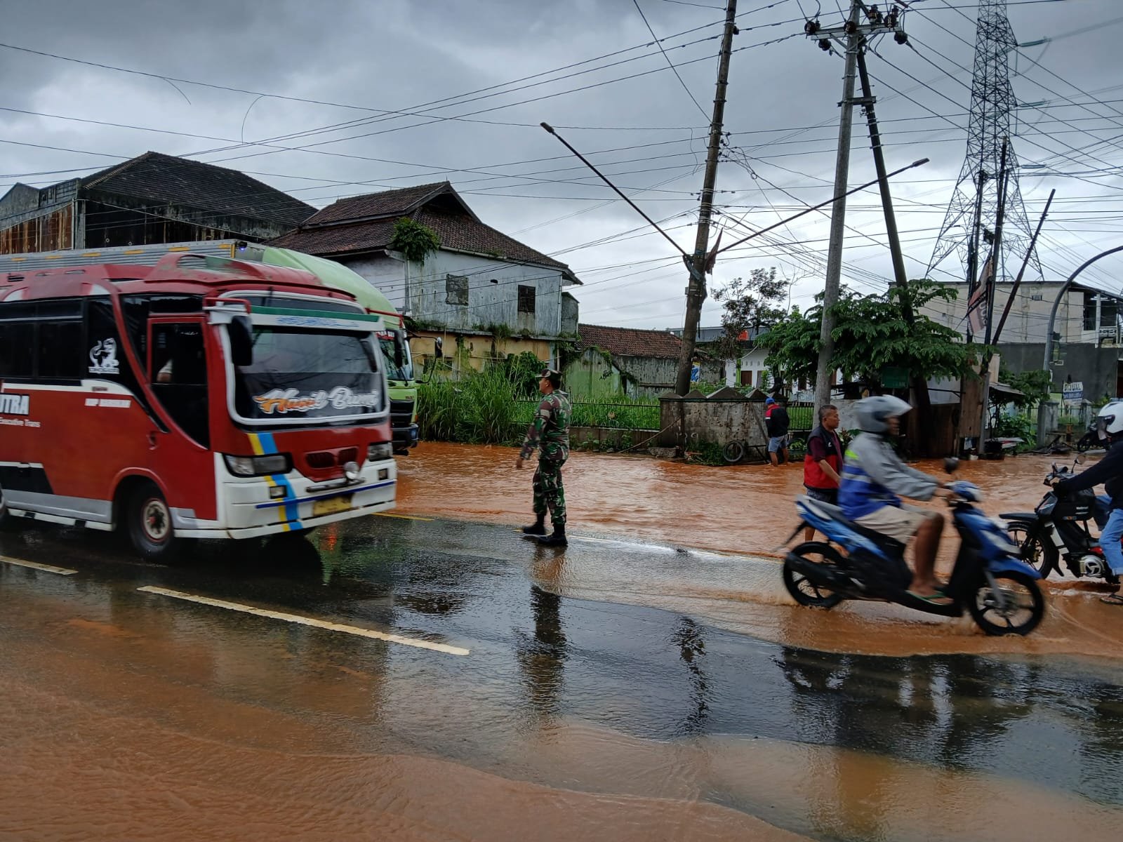 Banjir di Jalur Pantura, Babinsa Bantu Warga Atur Arus Lalu Lintas