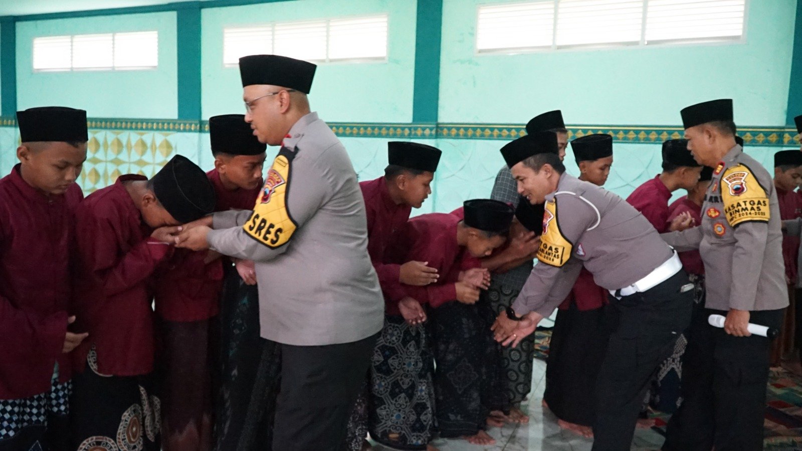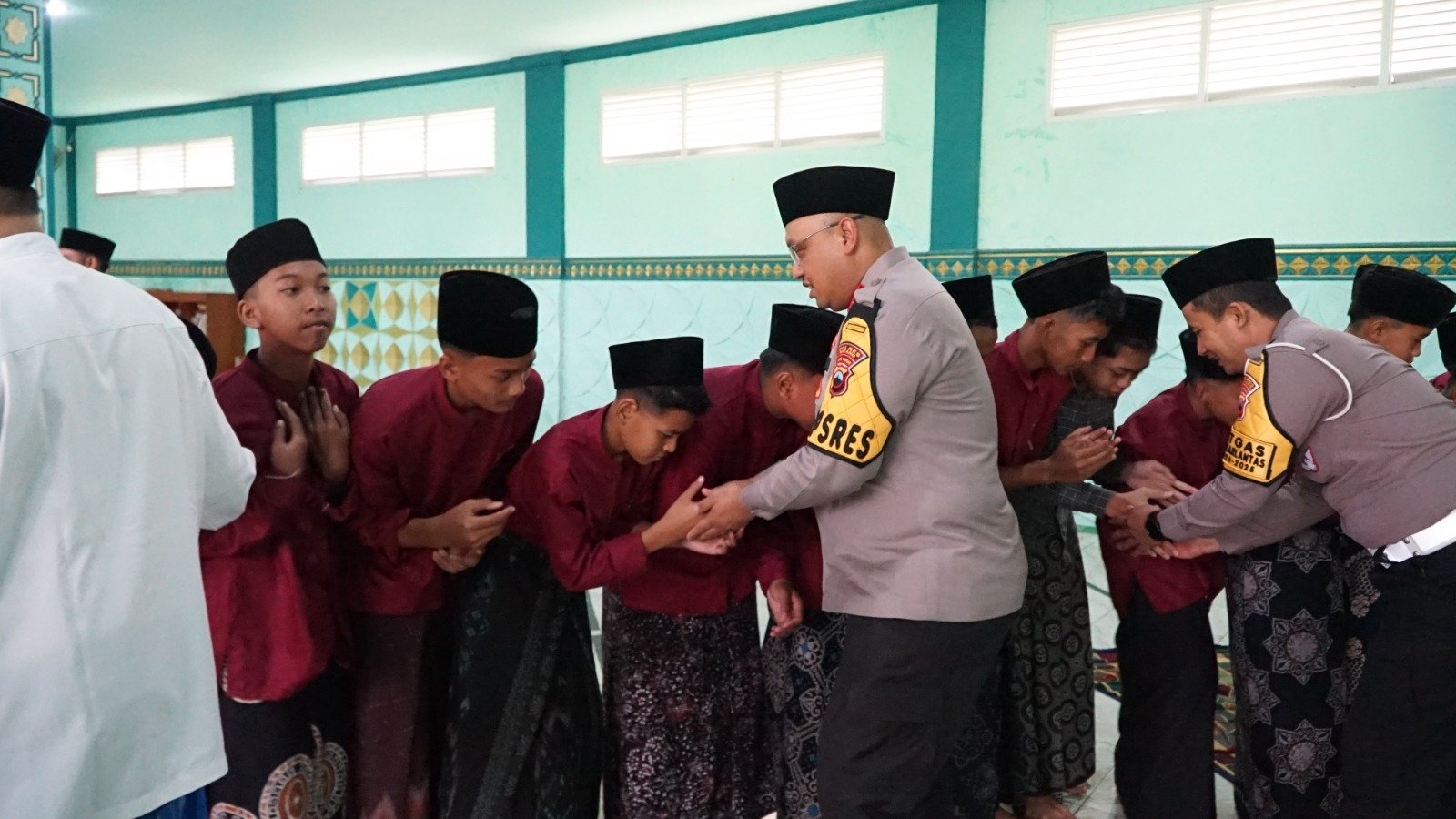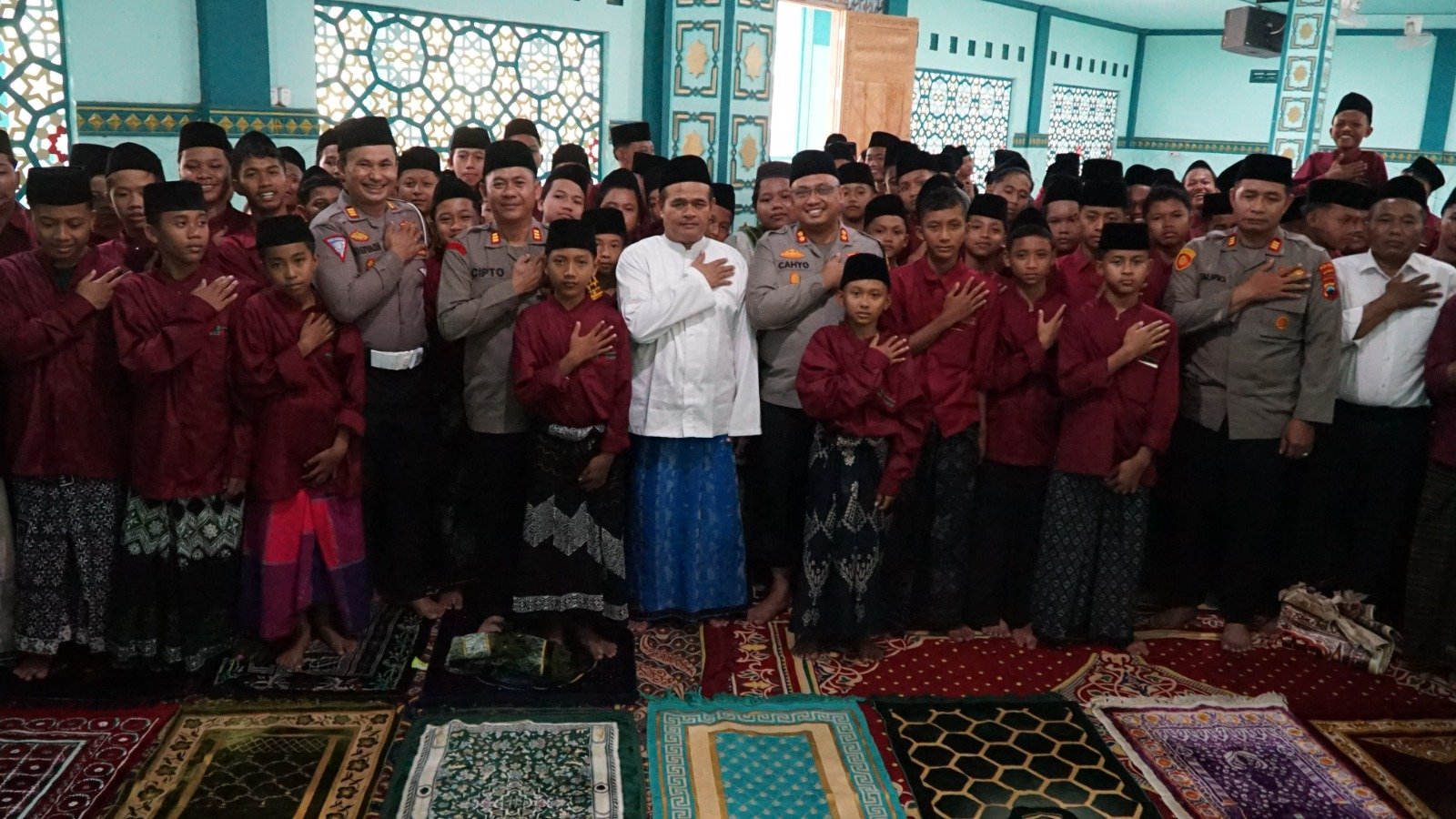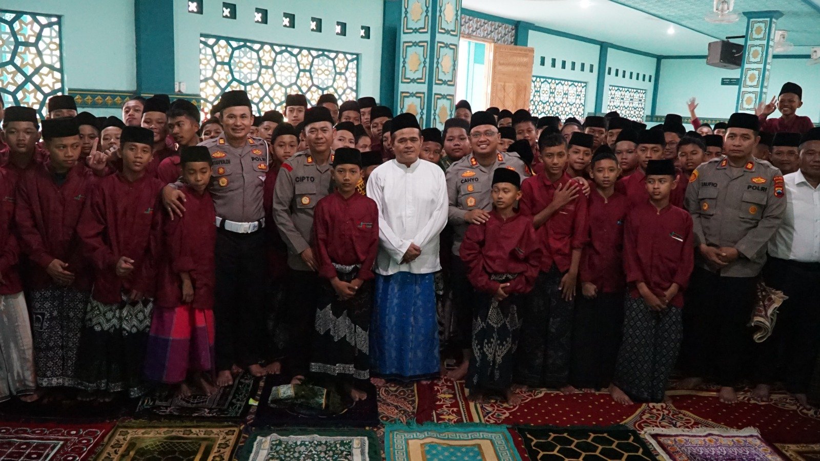 “Mari kita perkuat persatuan dan kesatuan sesuai dengan falsafah Bhinneka Tunggal Ika,” Kata Kapolres AKBP Nur Cahyo di hadapan para santri.