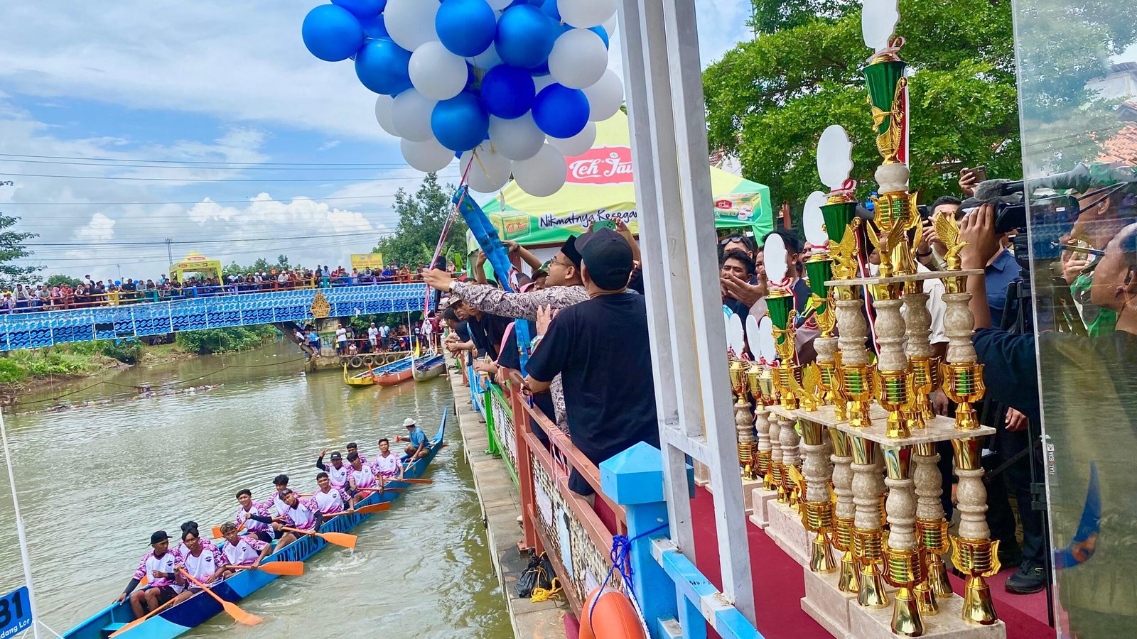 “Alhamdulillah, dua perahu yang kami janjikan sudah bisa dimanfaatkan pada lomba hari ini. Lomba dayung tradisional memiliki potensi besar sebagai daya tarik wisata sekaligus ajang pelestarian budaya lokal. Bahkan, tanpa intervensi besar dari pemerintah, kegiatan ini sudah mampu menarik partisipasi masyarakat secara luas,” jelasnya.