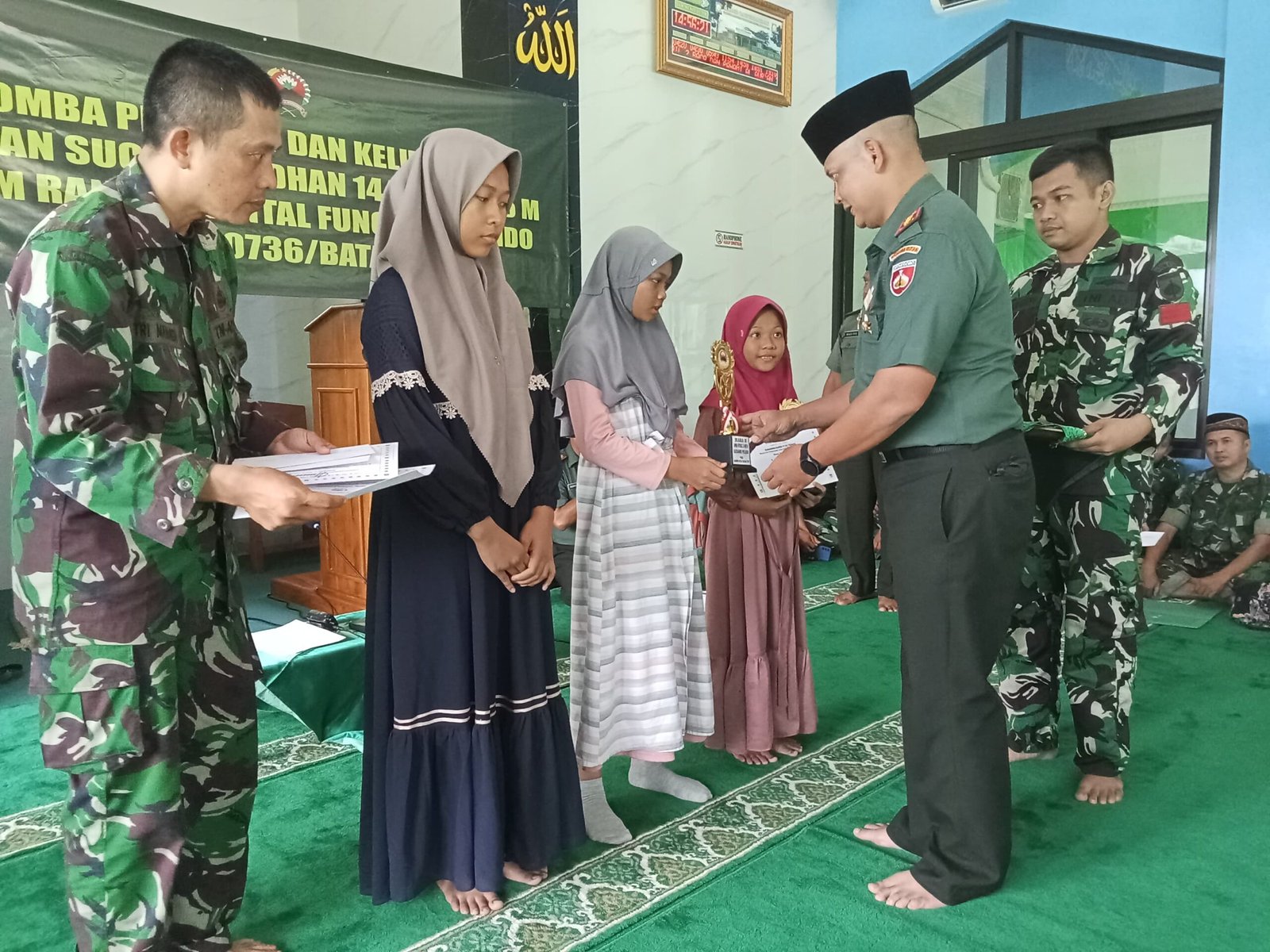 Juara hafalan alquran, Juara 1 Naifa Syakira anak dari Koptu Afifudin, Juara II diraih Aisya Alifa Anak dari Sertu Nanang dan Juara 3 Mekka Laila Ghufron Anak dari Sertu Kasirin.