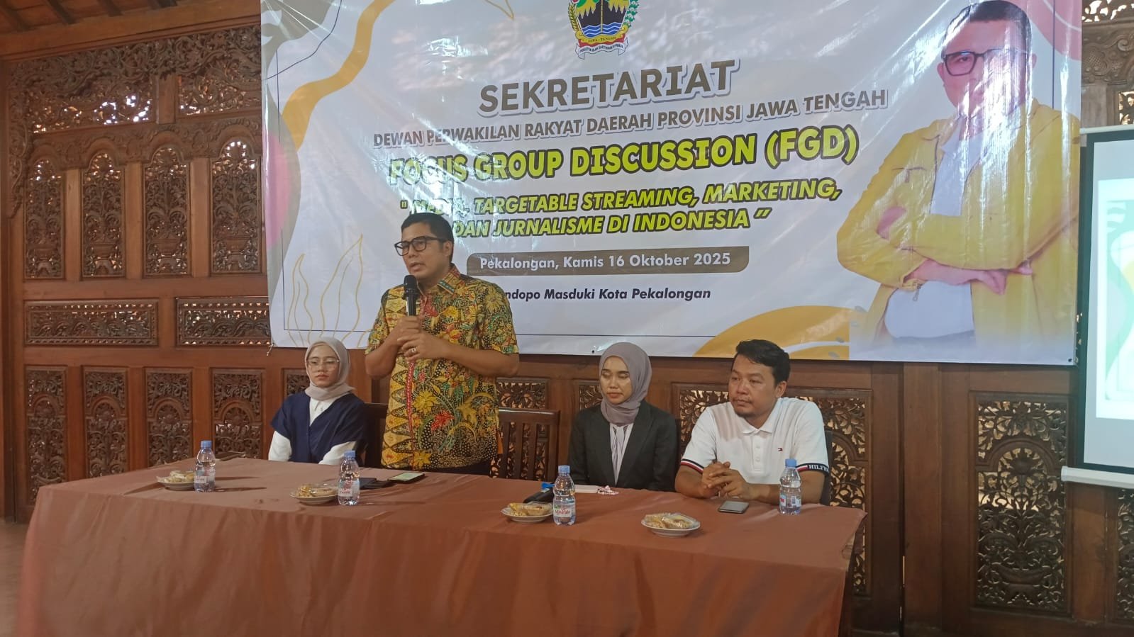 Pekalongan – teraspanturaranews.com Wakil Ketua Dewan Perwakilan Rakyat (DPRD) Jawa Tengah Muhammad Saleh menggelar Focus Group Discussion (FGD) dengan tema Media, Targetable Streaming, Marketing dan Jurnalisme di Indonesia bersama insan media Pantura di Pendapa Masduki, Kota Pekalongan, Kamis (16/10/2025).