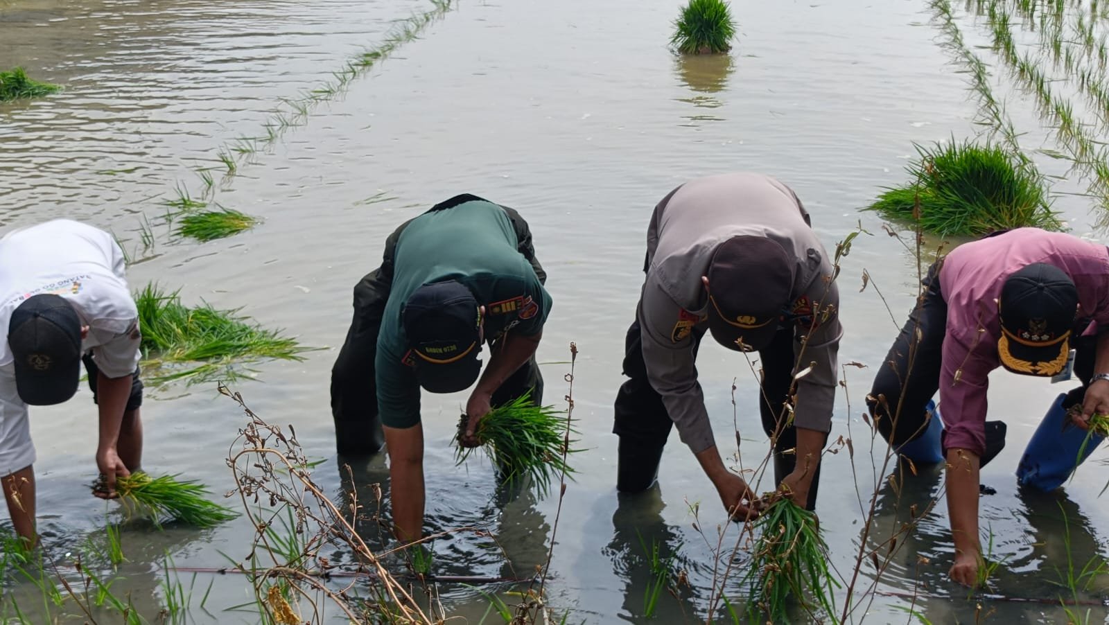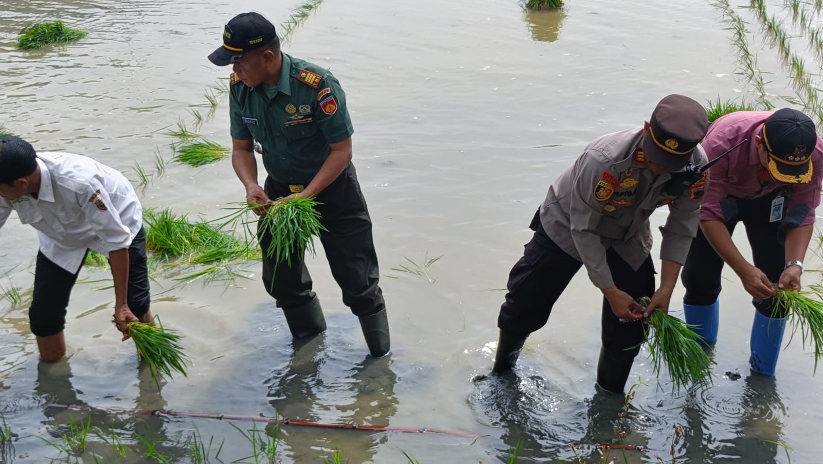 Batang,- Dalam rangka mendukung Program swasembada pangan yang menjadi salah satu fokus Presiden Prabowo Subianto dalam Asta Citanya, saat ini mulai direalisasikan oleh unsur Forkopimcam Batang dengan melakukan penanaman bibit padi, di lahan sawah produktif. Kegiatan tersebut, sesuai imbauan pemerintah untuk menjaga ketahanan pangan, khususnya di tingkat desa.