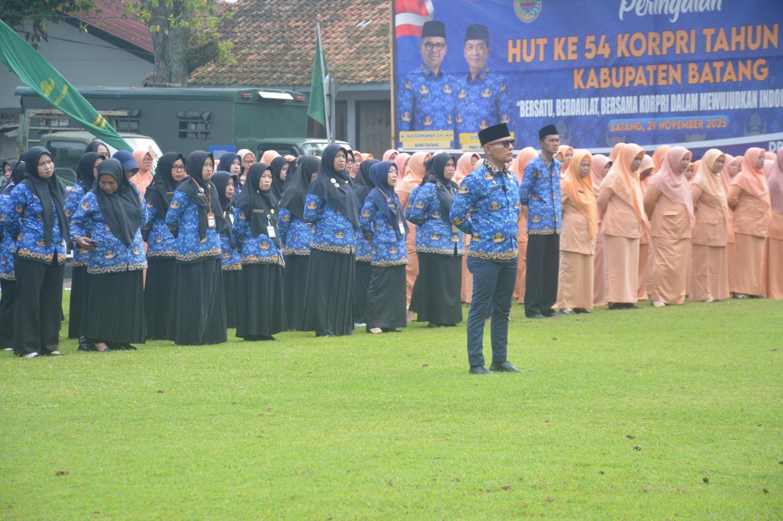 Batang – teraspanturanews.com Pemerintah Kabupaten Batang menggelar Upacara HUT Ke-54 Korps Pegawai Republik Indonesia (KORPRI) dan HUT Ke-26 Dharma Wanita Persatuan (DWP) di halaman Pendapa Kabupaten Batang, Senin (1/12/2025).