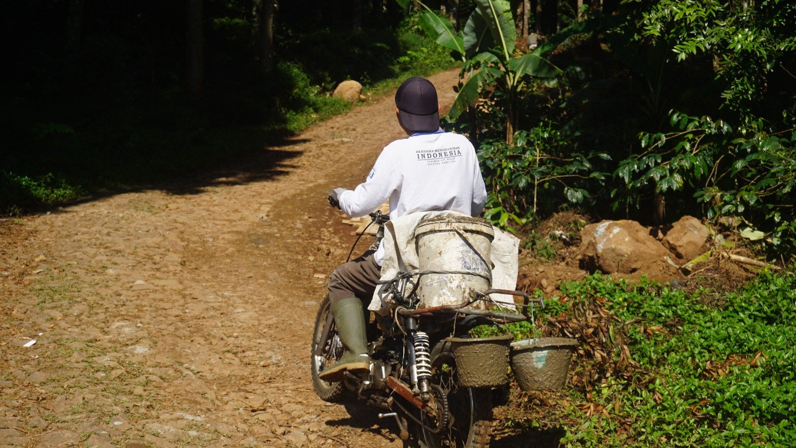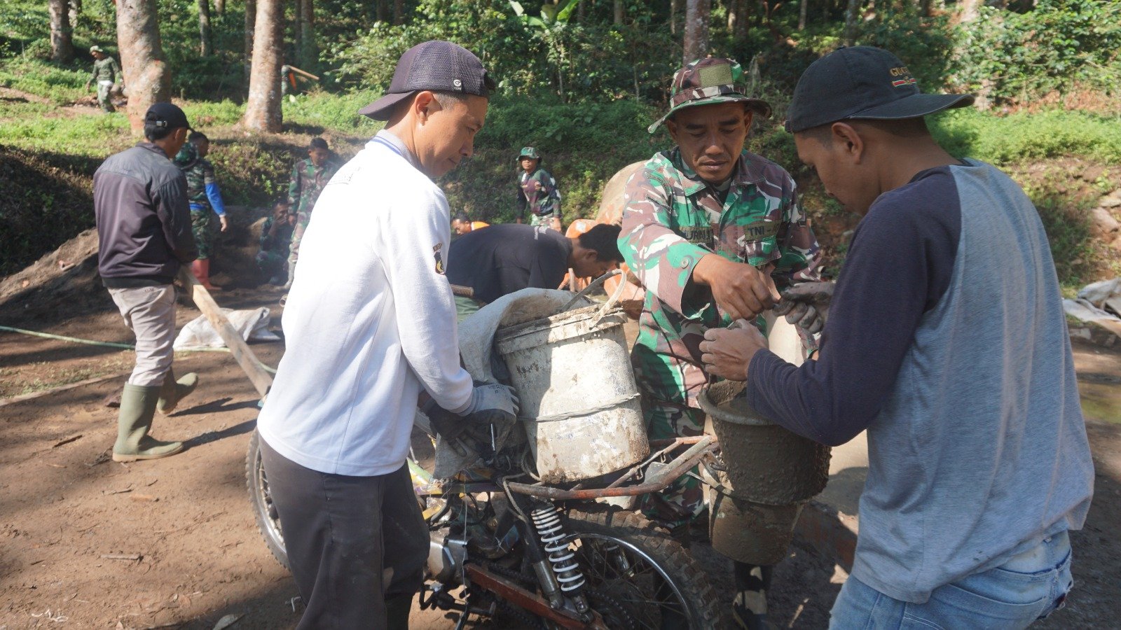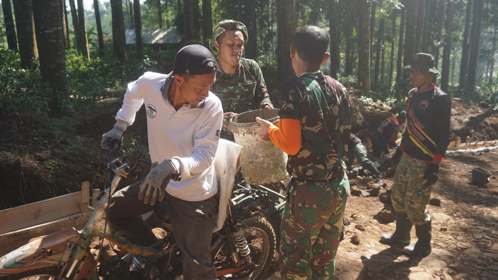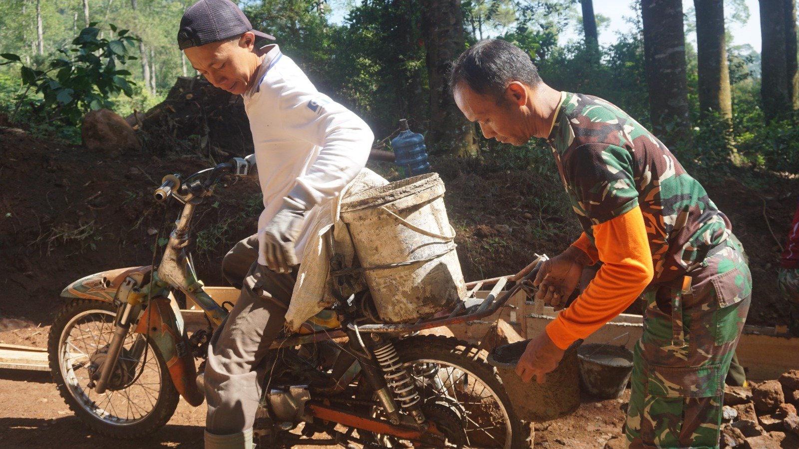 Sertu Murali juga menjelaskan. Adukan semen yang sudah jadi dimasukkan ke dalam ember kemudian diangkut menggunakan motor milik warga yang sudah dimodifikasi agar bisa sampai tempat lokasi, bahan pasir dan semen diolah dulu sehingga dalam pendistribusian material lebih mudah.