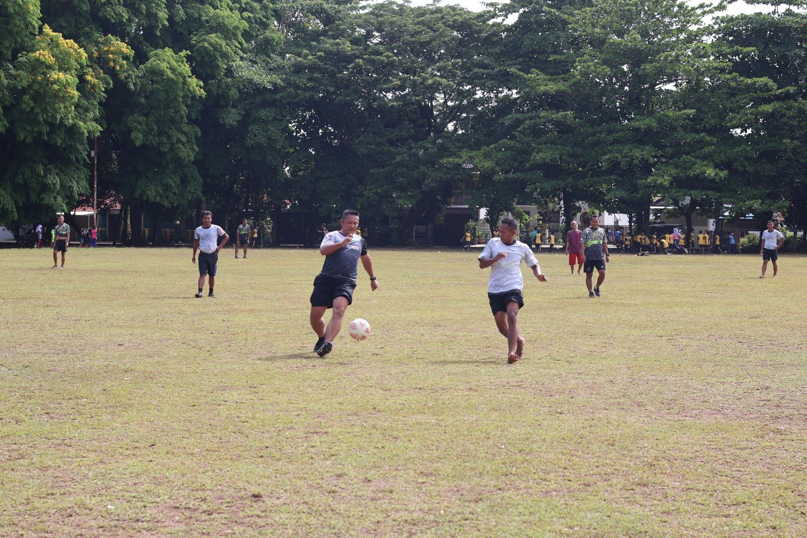 Sebelum pelaksanaan olahraga bersama, terlebih dahulu dilaksanakan peregangan otot, kemudian dilanjutkan dengan joging bersama, setelah itu bermain sepak bola.
