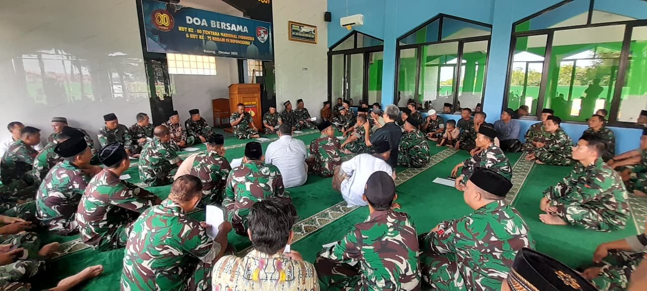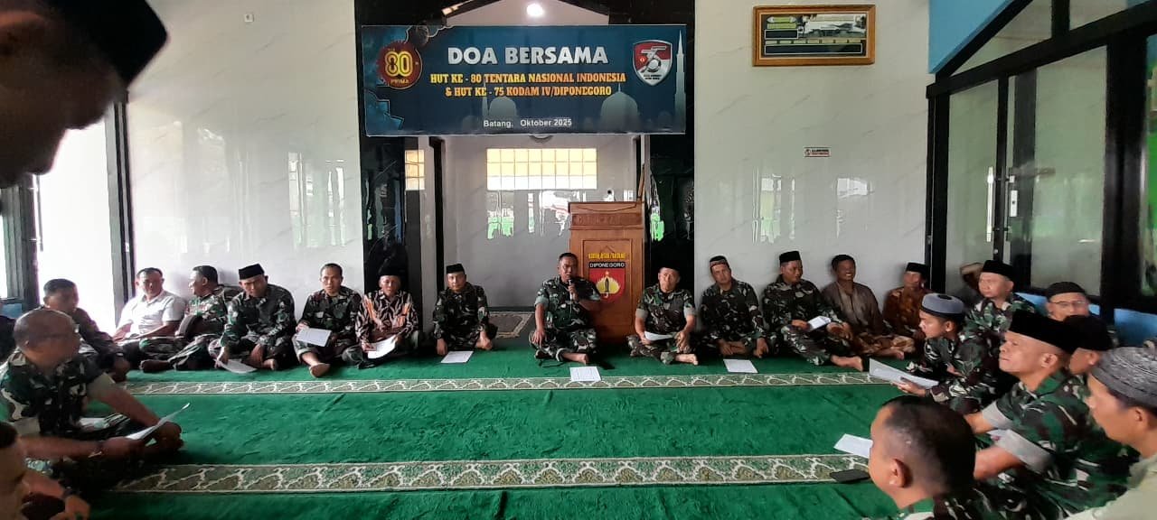 Batang- teraspanturanews.com Dalam rangka menyambut peringatan HUT TNI ke 80 dan ke 75 kodam 1V /Diponegoro, Kodim 0736/Batang menggelar doa bersama bertempat di Masjid Baiturrahman, komplek Lapangan Tembak Para Duta Kodim 0736/Batang Tragung. Sabtu (4/10/2025).
