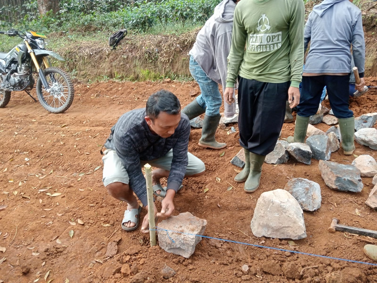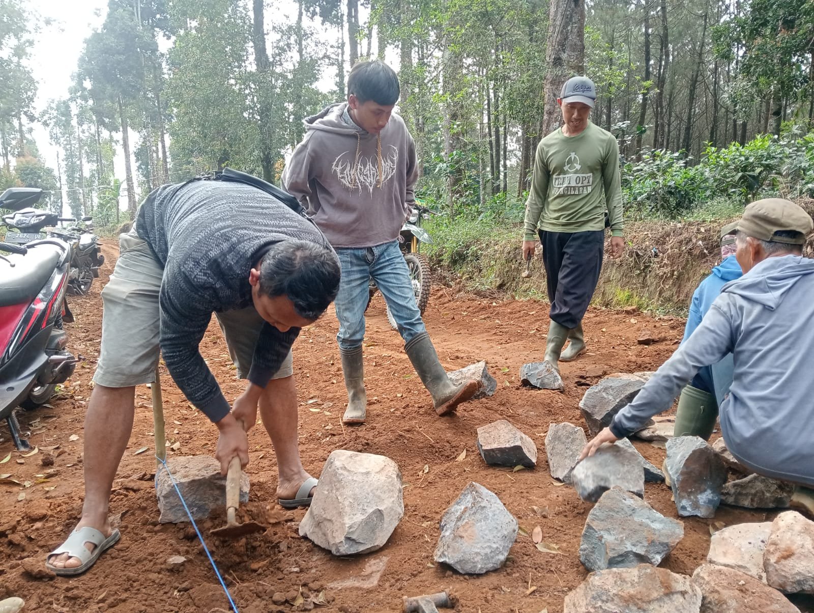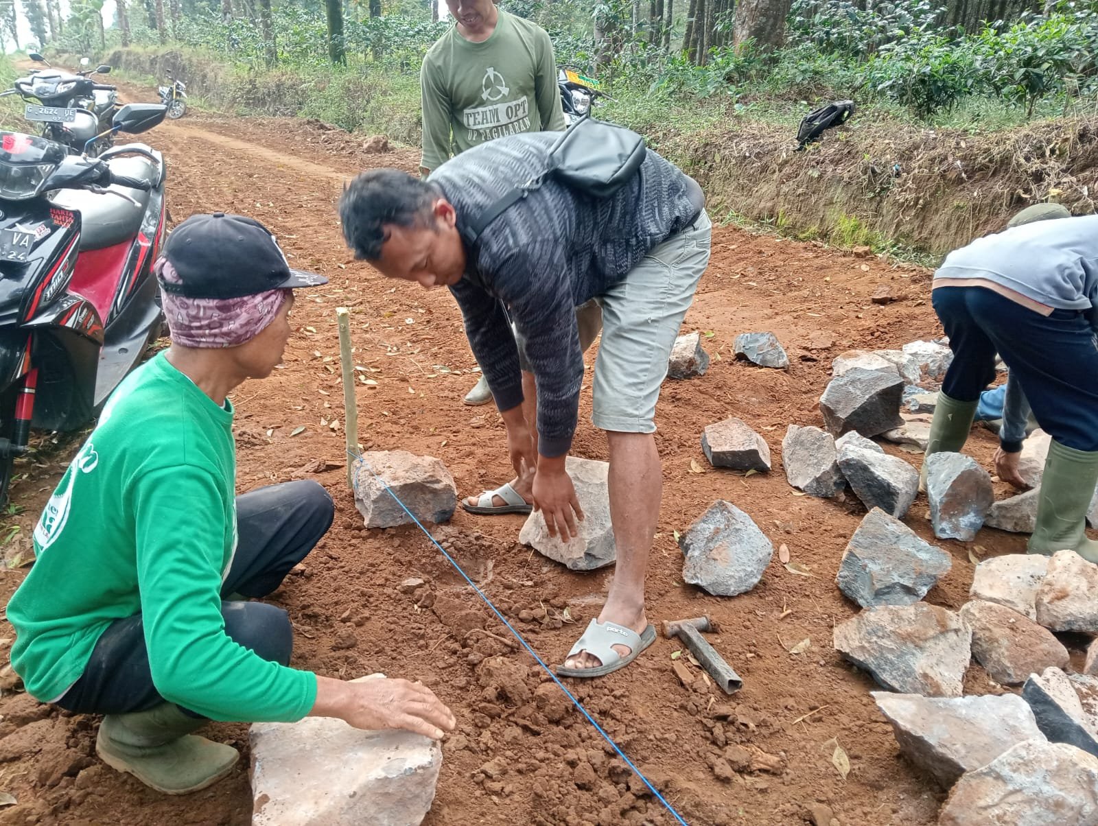 Menurut Kades Dendi Hermawan, ini merupakan suatu kebanggaan bahwa seluruh perangkat dan warga turut serta dalam kegiatan TMMD kali ini. Kades sendiri tak segan-segan ikut turun langsung membantu pekerjaan di lokasi, baik mengangkut material batu bahkan membantu menata makadam.