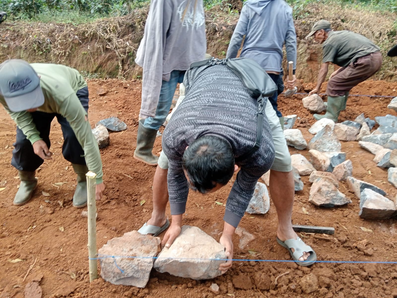 Dengan penuh semangat Kades Dendi Hermawan terjun langsung bersama warganya untuk membantu para personel Satgas TMMD Reguler 121 di sasaran makadam jalan. Aksi kepala desa yang mengangkat batu tersebut mampu memacu semangat dan antusias warga lain untuk semakin giat dalam bekerja.