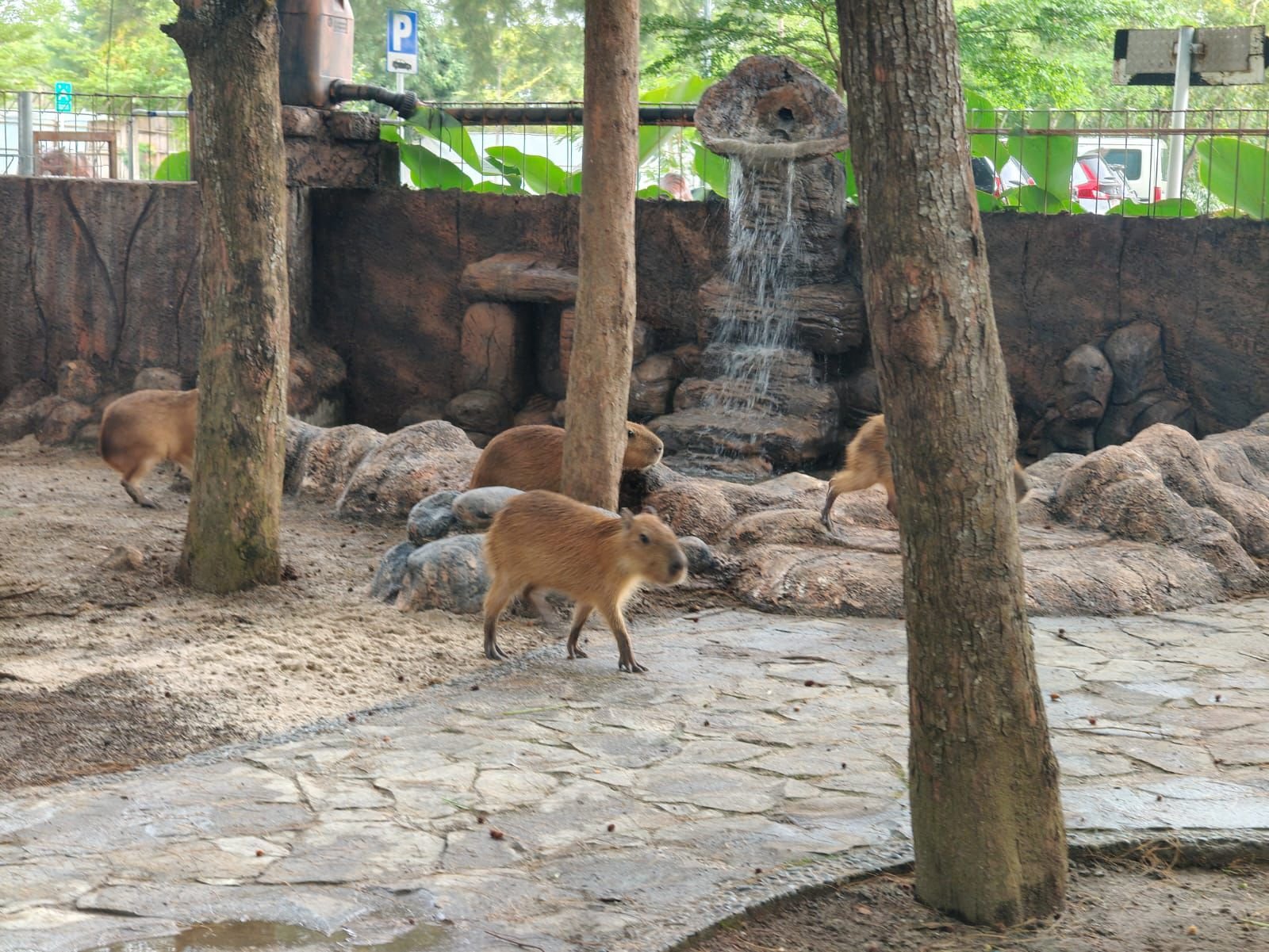 Kapibara tersebut ditempatkan di area depan Pantai SBJ. Lima ekor kapibara tampak selalu bergerombol dan bergerak bersama, mulai dari berjalan hingga menuju tempat makan. Kebiasaan unik inilah yang membuat banyak pengunjung merasa gemas.