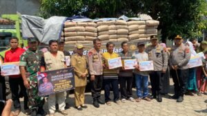 Batang – Kapolda Provinsi Jateng Inspektur Jenderal Irjen Ahmad Luthfi menyerahkan bantuan 1.000 sak semen untuk penanggulangan gempa di Desa Lebo, Kecamatan Warungasem, Kabupaten Batang, Senin (8/7/2024).