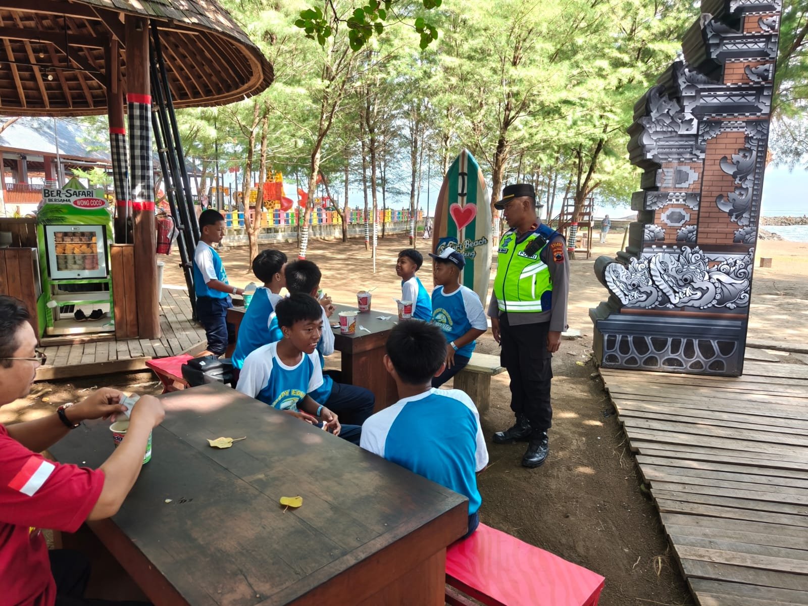 Batang – teraspanturanews.com Giat Subsatuan Tugas (Subsatgas) kepolisian Sub Sektor Kandeman operasi Liliin Candi 2025 Polres Batang yang dipimpin langsung oleh Kapolsubsektor Kandeman Ipda Sriwidadi melaksanakan pengamanan dan pemantauan objek wisata di Pantai Sigandu. Kegiatan tersebut bertujuan untuk memastikan situasi keamanan dan ketertiban masyarakat (kamtibmas) tetap kondusif bagi para pengunjung.