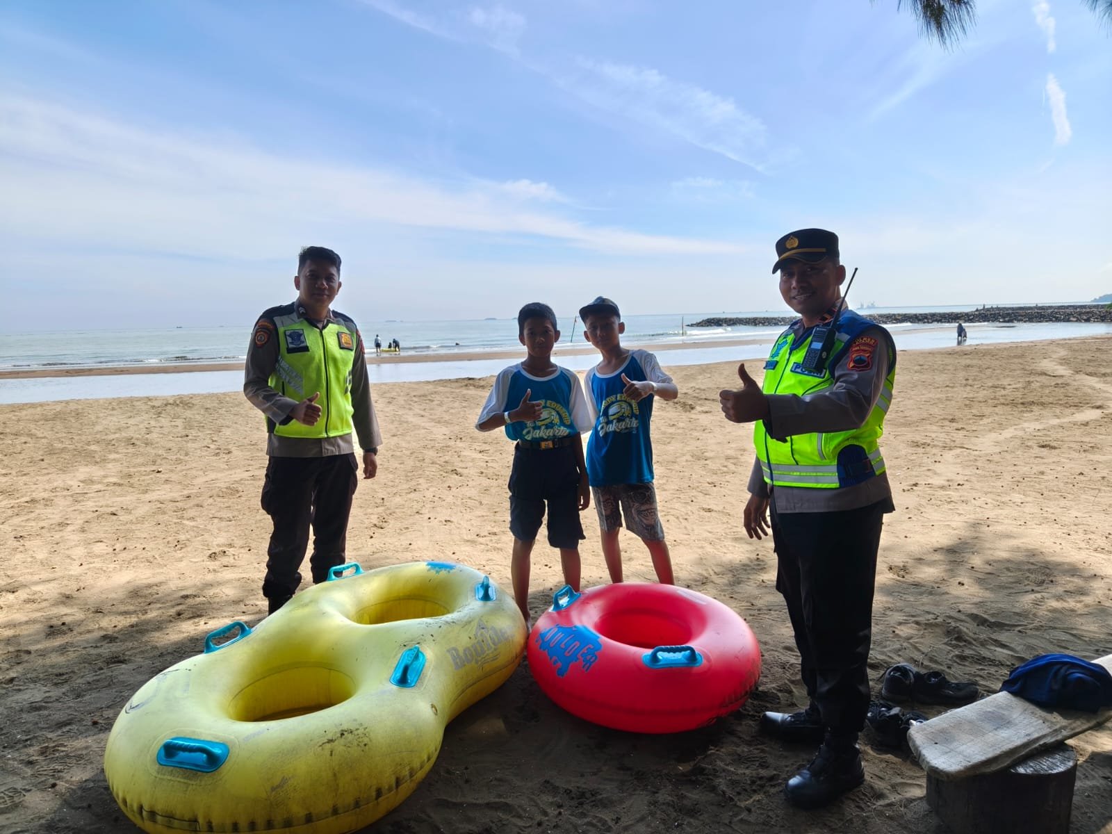 Selain itu, kondisi alam juga terpantau aman. Gelombang air laut terlihat landai dan air laut masih dalam keadaan surut, sehingga aktivitas wisata dapat berlangsung dengan aman. Personel pengamanan tetap memberikan imbauan kepada pengunjung agar selalu waspada dan mematuhi aturan keselamatan selama berada di area pantai.(AS Saeful Husna Kabiro Batang Jateng)