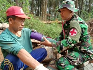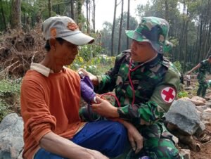 Batang, – Tidak Hanya melayani Anggota TNI saja, Tim Kesehatan Lapangan (Keslap) Satgas TMMD 121 Kodim 0736/Batang juga berikan layanan kesehatan kepada warga Desa Pacet yang membantu dalam pelaksanaan kegiatan TMMD.
