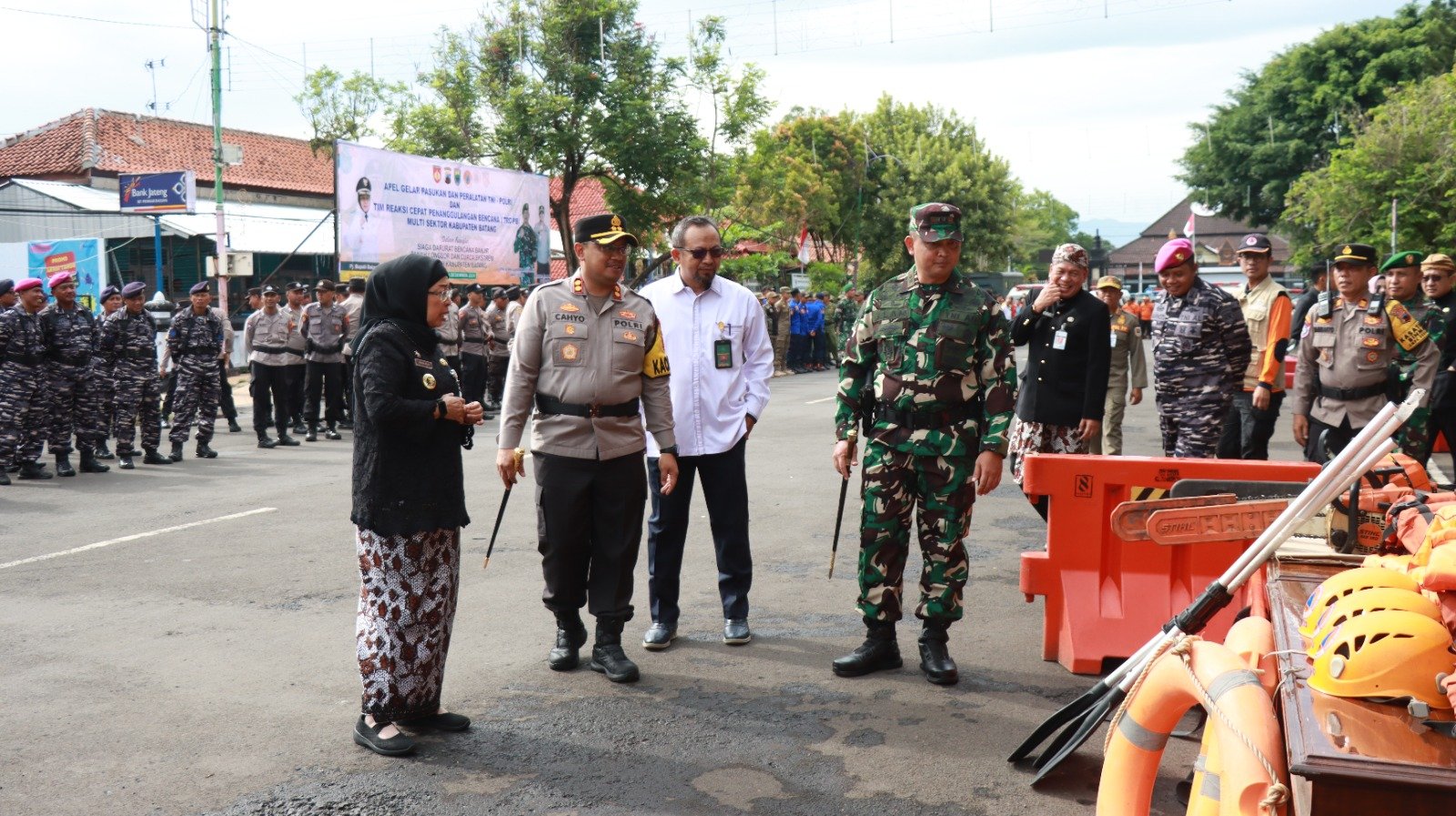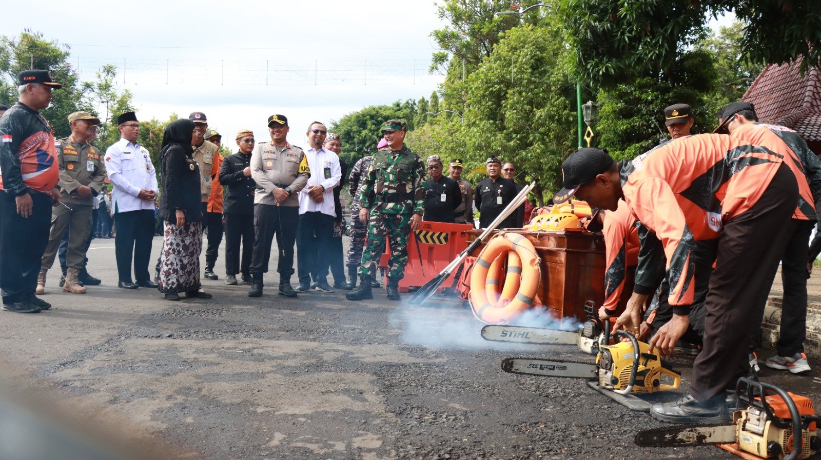 Batang – Pemerintah Kabupaten Batang melakukan apel gelar pasukan dan peralatan TNI-Polri serta Tim Reaksi Cepat Penanggulangan Bencana (TRC-PB) dalam rangka kesiapsiagaan menghadapi potensi bencana banjir, tanah longsor, dan cuaca ekstrem.