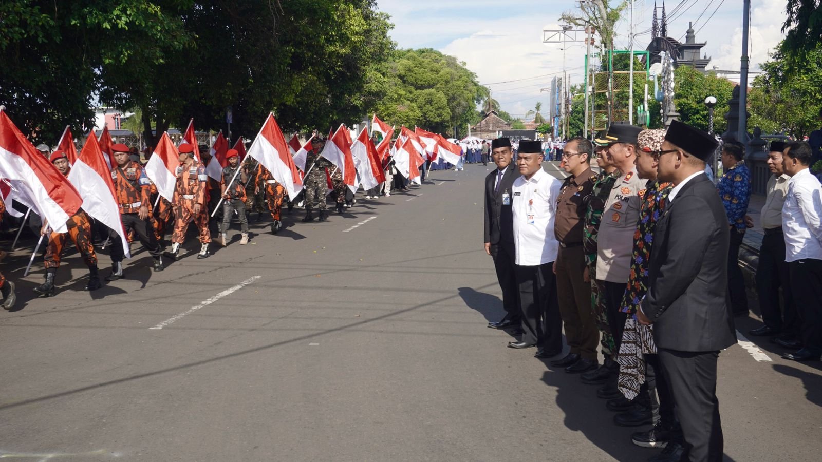 Pasukan kirab terdiri TNI-Polri, organisasi masyarakat, pelajar SMP dan SMA, hingga komunitas lokal.