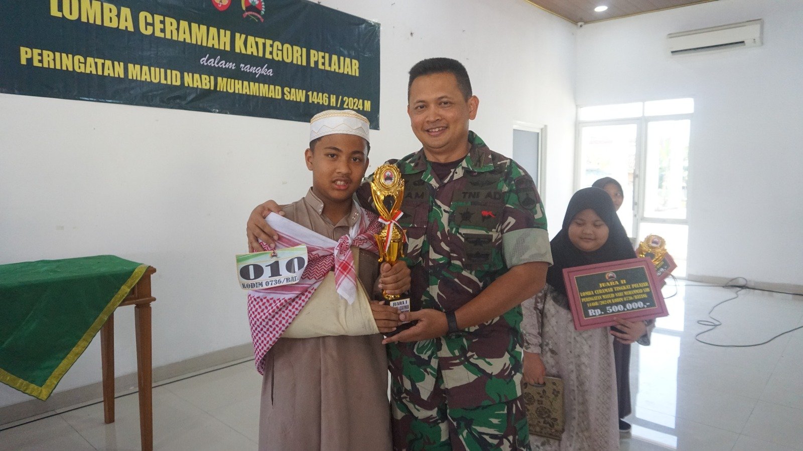 Lomba ceramah anak-anak kali ini diikuti sebanyak 33 perserta dari putra putri anggota Staf Kodim dan Koramil jajaran, yakni dari Koramil 1 sampai dengan Koramil 13. Dan tampak terlihat para peserta menunjukkan sikap antusiasme dalam mengikuti perlombaan tersebut. Selain bisa bertemu dengan anak anggota lainnya, kegiatan yang positif ini juga dapat menambah amal ibadah apalagi diadakan dalam rangka memperingati Maulid Nabi Muhammad SAW, “ujar Dandim”.