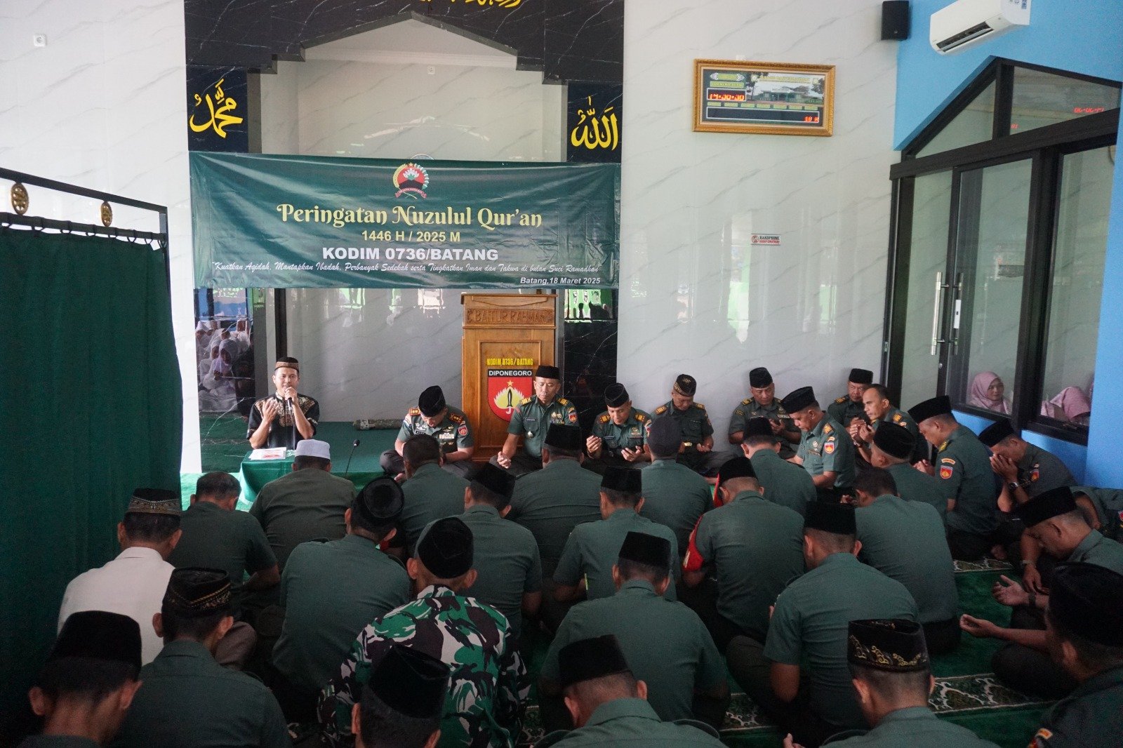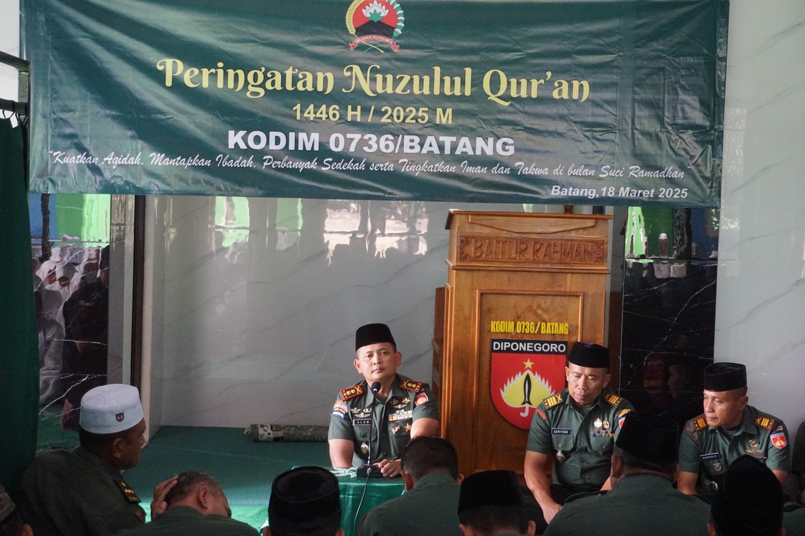 Hal tersebut diungkapkan Komandan Kodim 0736/Batang saat menghadiri peringatan Nuzulul Quran 1446 H yang diikuti seluruh personel, baik militer, PNS dan Persit Kartika Chandra Kirana Cabang XXIV jajaran Kodim 0736/Batang. Selasa (18/3/2025).
