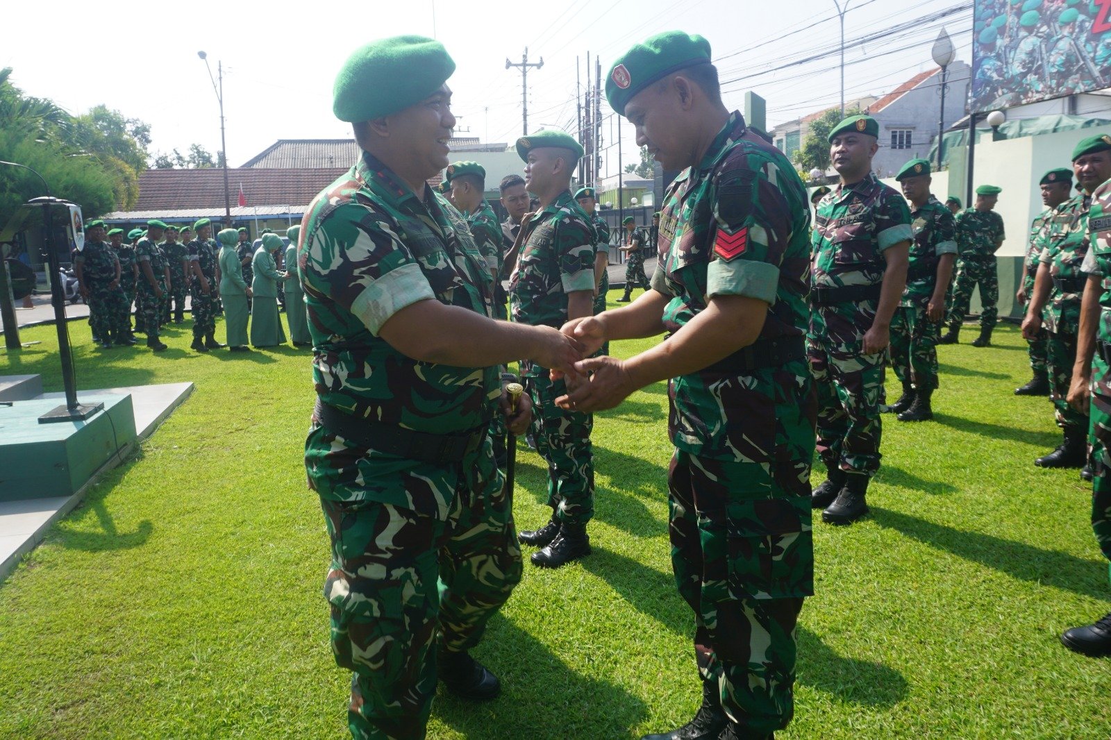 Batang – teraspanturanews.com Komando Distrik Militer (Kodim) 0736/Batang menggelar upacara kenaikan pangkat bagi sejumlah personelnya pada hari Rabu (01/4/2026) di Markas Komando Distrik Militer (Makodim) setempat.