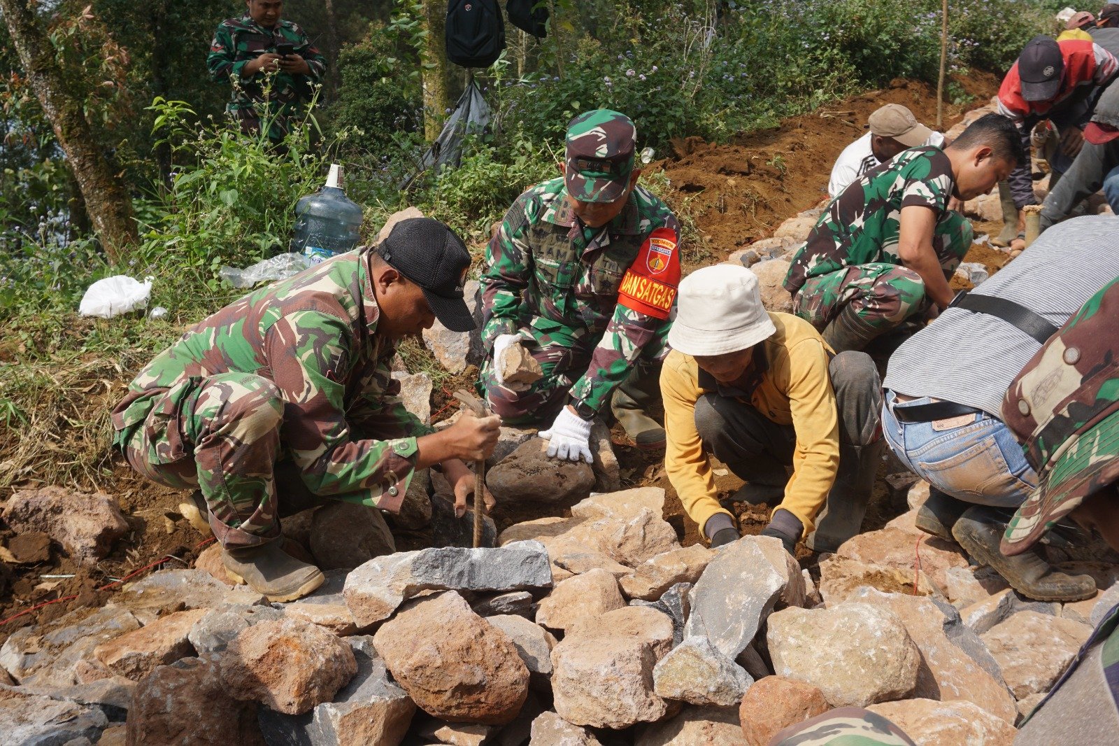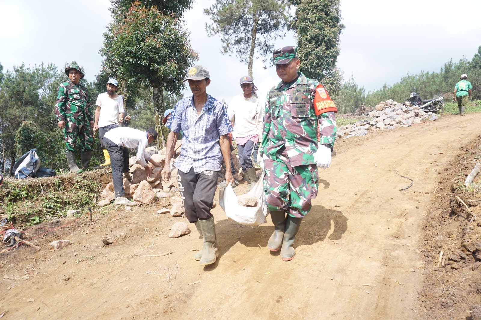 Komandan Satgas Tidak Segan Turun Ke Lapangan dan Turut Bekerja di Lokasi TMMD Reguler 121 Desa Pacet