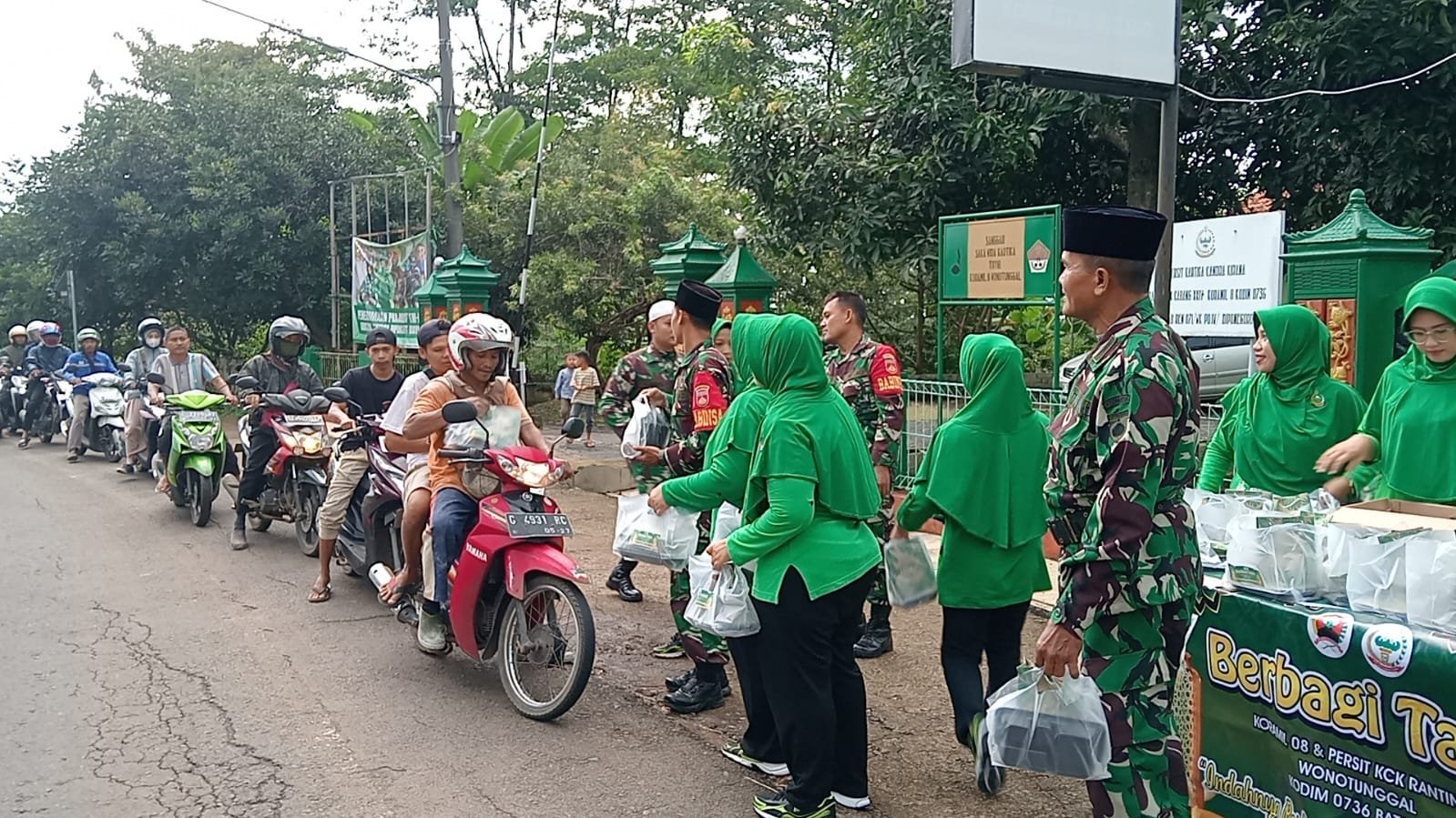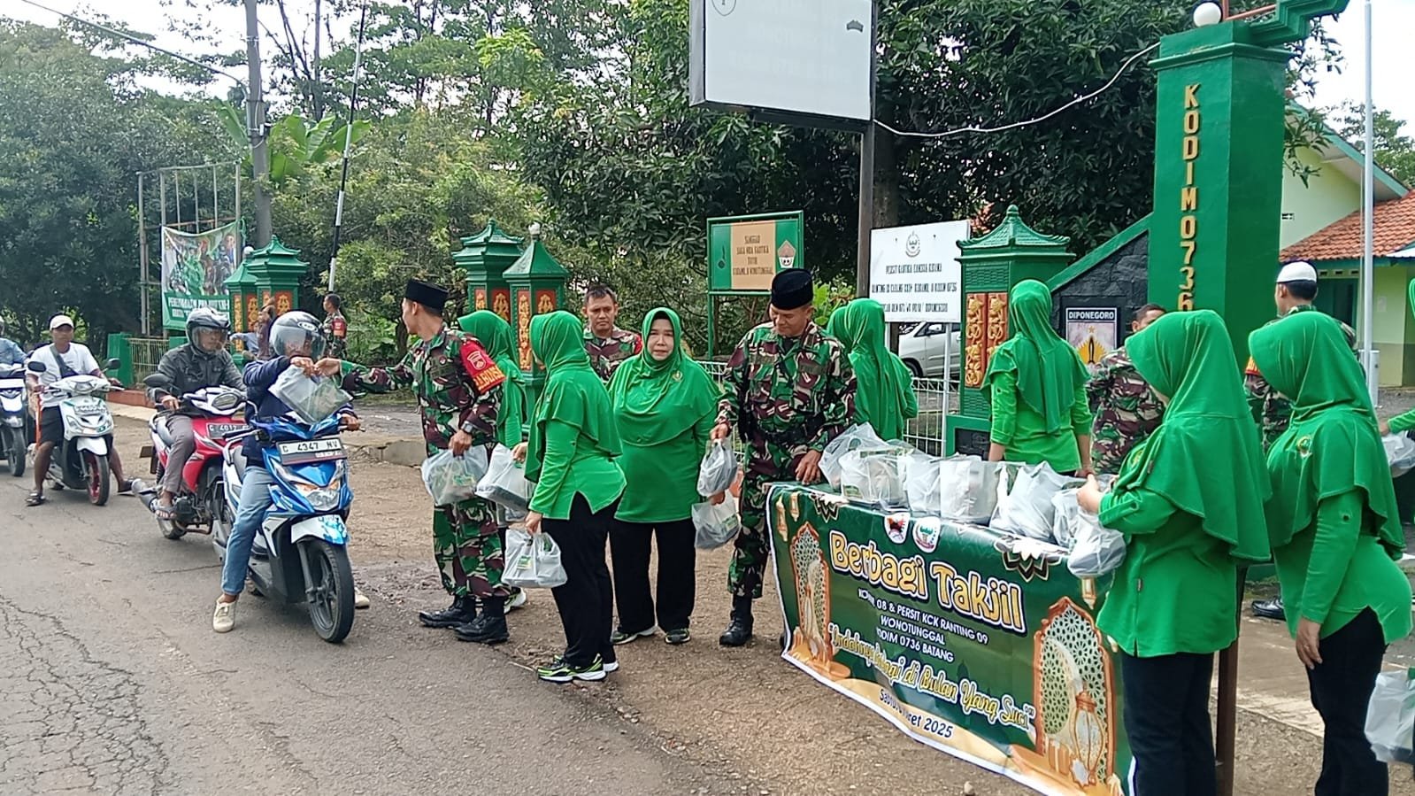 Kegiatan ini dipimpin langsung oleh Danramil 8/Wonotunggal Lettu Ajak Giyanto yang turut serta bersama anggota dan persit Kartika Candra Kirana Ranting 09 dalam membagikan takjil kepada pengendara serta warga yang melintas.