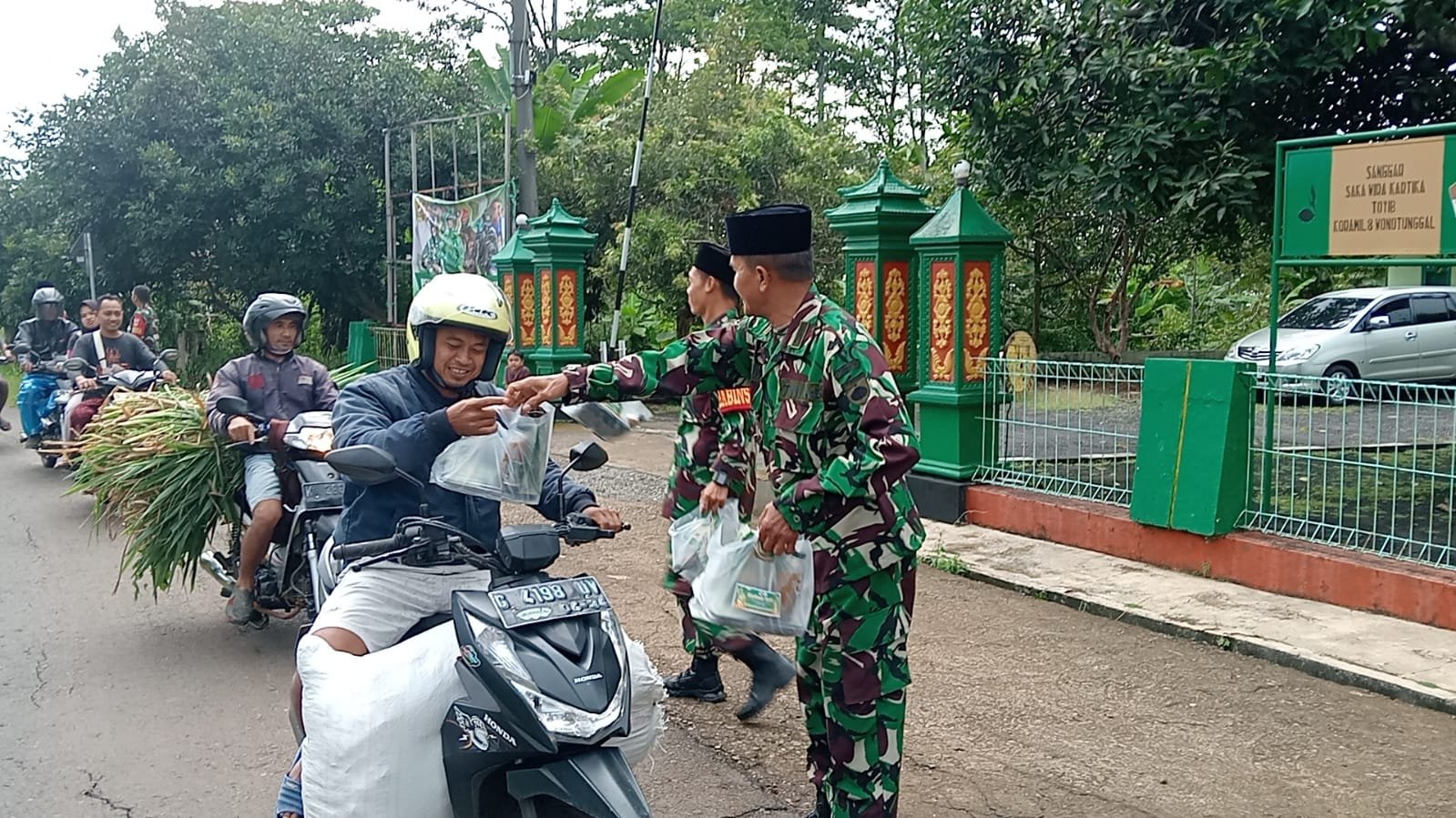 Salah satu pengguna jalan, Ruslan, mengucapkan terimakasih kepada TNI dari Koramil Wonotunggal atas kepeduliannya dalam berbagi nasi kotak jelang berbuka puasa ke masyarakat.