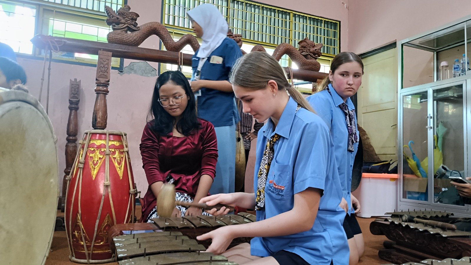 Untuk mmperdalam pembelajaran kebudayaan Indonesia, siswi Mackillop Catholic Collage, akan didampingi oleh Arie Laksmie Dewie selaku guru bahasa Inggris SMAN 2 Batang, mempelajari seni gamelan.