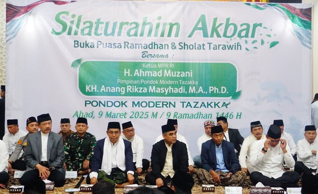 Batang – Ketua Majelis Permusyawaratan Rakyat Republik Indonesia (MPR RI) Ahmad Muzani melakukan kunjungan kerja dan buka puasa bersama di Pondok Modern Tazakka, Kecamatan Bandar, Kabupaten Batang, Minggu (9/3/2025).