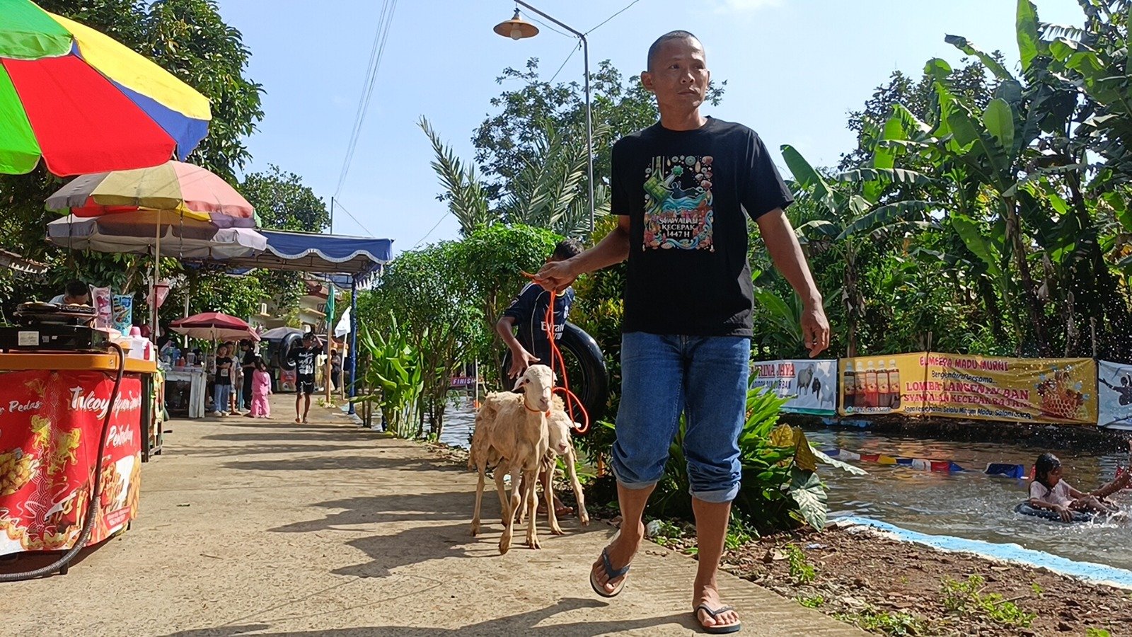 Sementara itu, salah satu peserta, Kaka bersama teman sebayanya, juga menjadikan even tahunan ini sebagai langganan untuk menyalurkan hobinya bermain air. Terlebih setelah tahun lalu menjadi juara ketiga dengan hadiah uang tunai, maka tahun ini pun makin bersemangat demi meraih hadiah utama yakni dua ekor kambing.