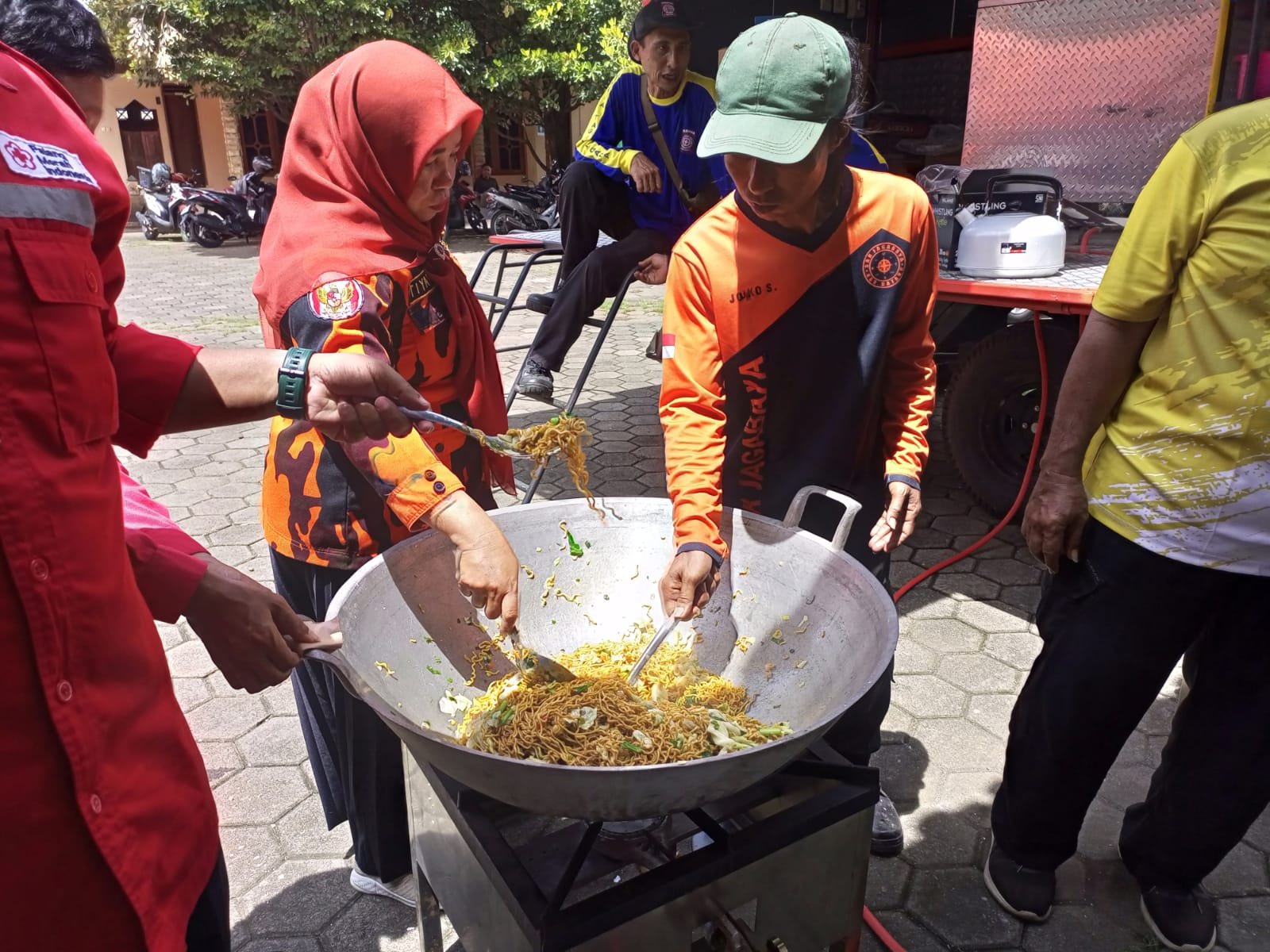 “Tim pendiri tenda saling bekerja sama menggotong peralatan tenda dan memasang tenda hingga berdiri dengan sempurna, dan tim dapur darurat dilatih menggunakan peralatan memasak yang ada di container dapur darurat kemudian memasak mie goreng dan juga telur dadar,” terangnya.