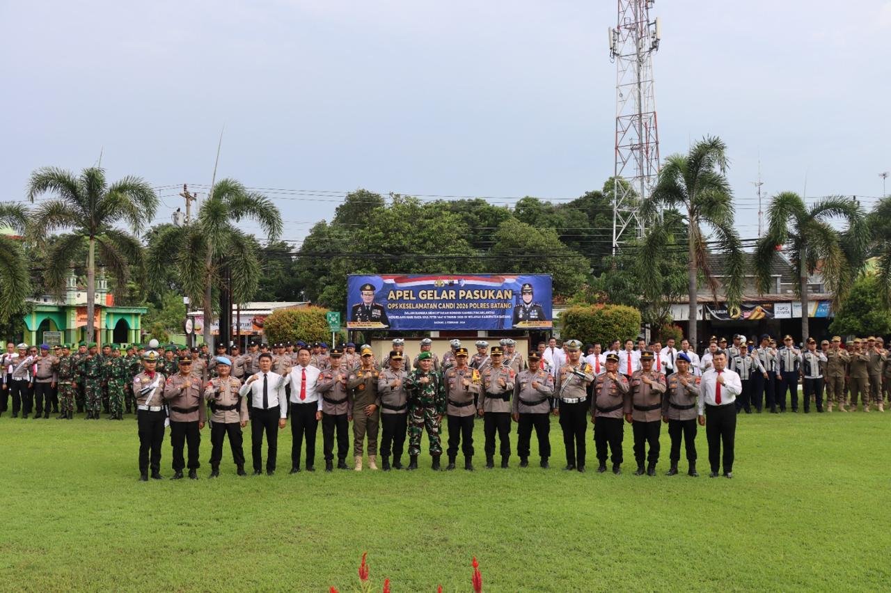 Batang – teraspanturanews.com Polres Batang menggelar Apel Gelar Pasukan Operasi Keselamatan Candi 2026, Senin (2/2/2026). Apel tersebut dipimpin oleh Wakapolres Batang Kompol Indra Hartono dan diikuti para Pejabat Utama (PJU) Polres Batang, perwakilan Kodim 0736 Batang, Dishub Batang, Satpol PP Kabupaten Batang, para perwira, serta seluruh personel Polres Batang.
