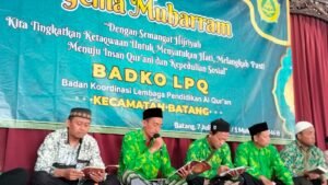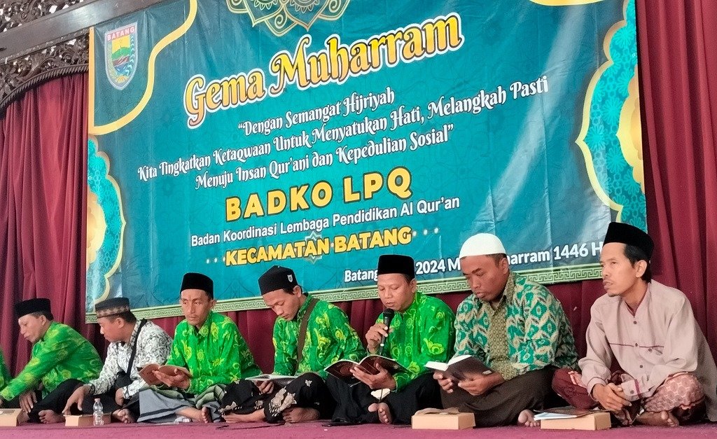 Batang – Tahun Baru Islam, ustaz/ustazah yang tergabung dalam Badan Koordinasi Lembaga Pendidikan Alquran (Badkol LPQ) Kecamatan Batang menggelar khotmil quran. Even tersebut merupakan bentuk upaya menjaga kompetensi dan keistiqomahan mereka dalam melafalkan ayat suci sesuai kaidah tajwid.