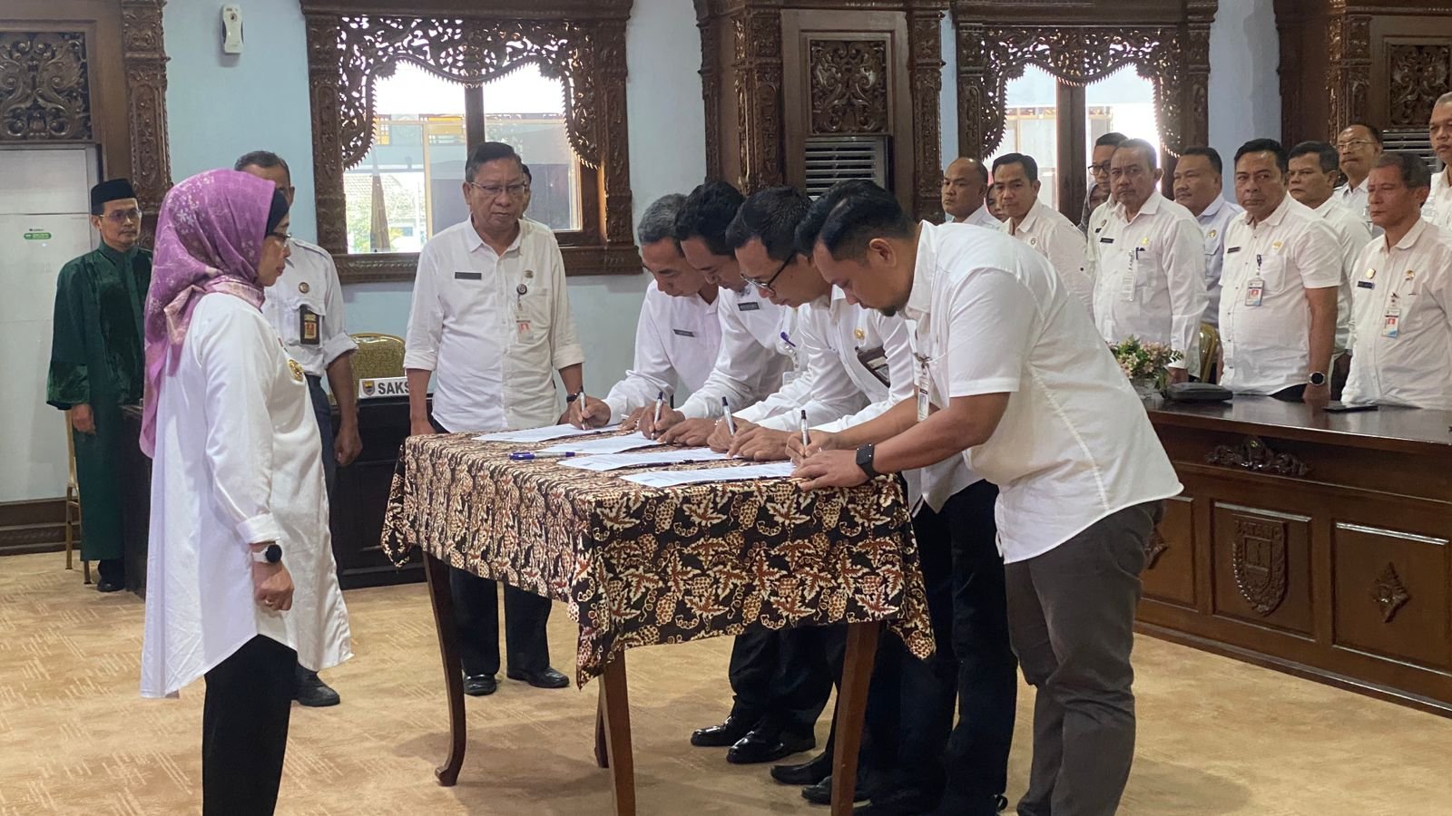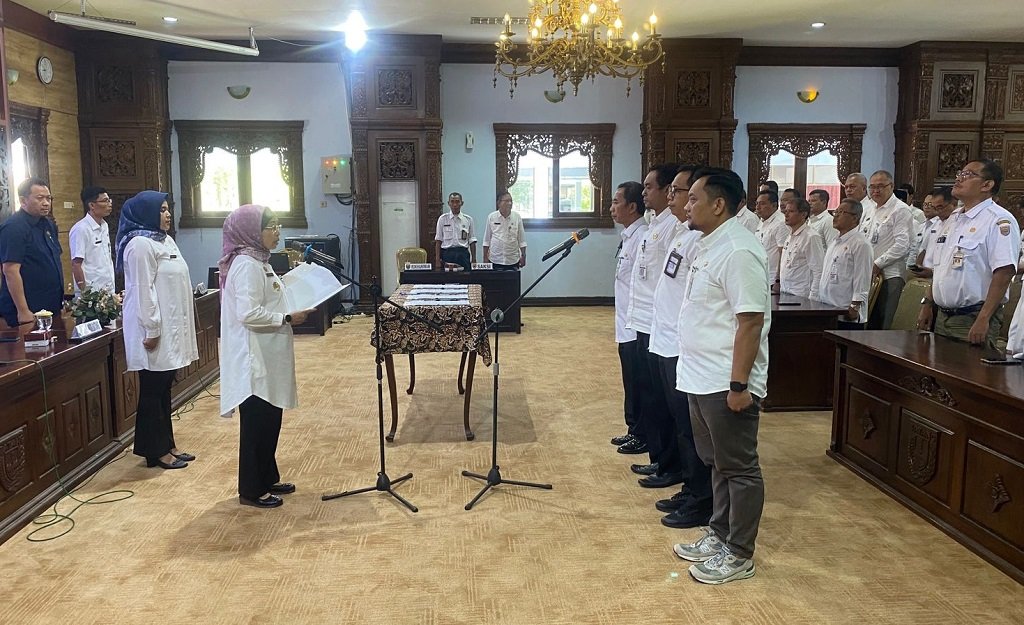 Batang – teraspanturanews.com Penjabat (Pj) Bupati Batang Lani Dwi Rejeki melantik, pengambilan sumpah jabatan 4 pejabat pimpinan tinggi pratama di Aula Bupati Batang, Kabupaten Batang, Rabu (11/2/2025).