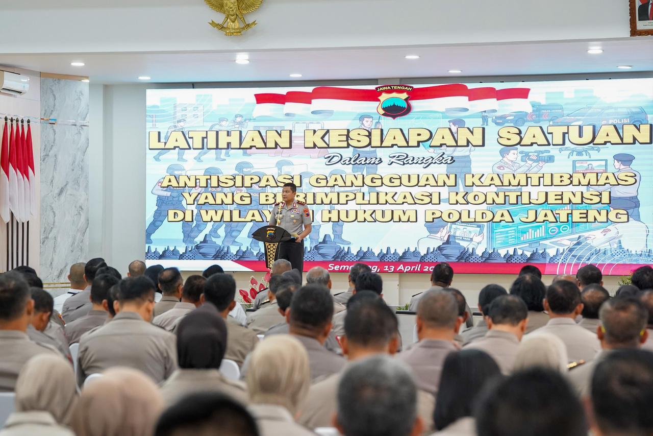 Polda Jateng&Kota Semarang — teraspanturanews.com Menjelang peringatan Hari Buruh Internasional (May Day), Polda Jawa Tengah memperkuat kesiapan personel melalui Latihan Kesiapan Satuan yang digelar di Gedung Borobudur, Senin (13/4/2026). Bukan sekadar latihan rutin, kegiatan ini menjadi upaya serius untuk memastikan bahwa setiap anggota Polri hadir di tengah masyarakat, khususnya para buruh yang akan menyampaikan aspirasinya, dengan pendekatan yang humanis, profesional, dan terukur.