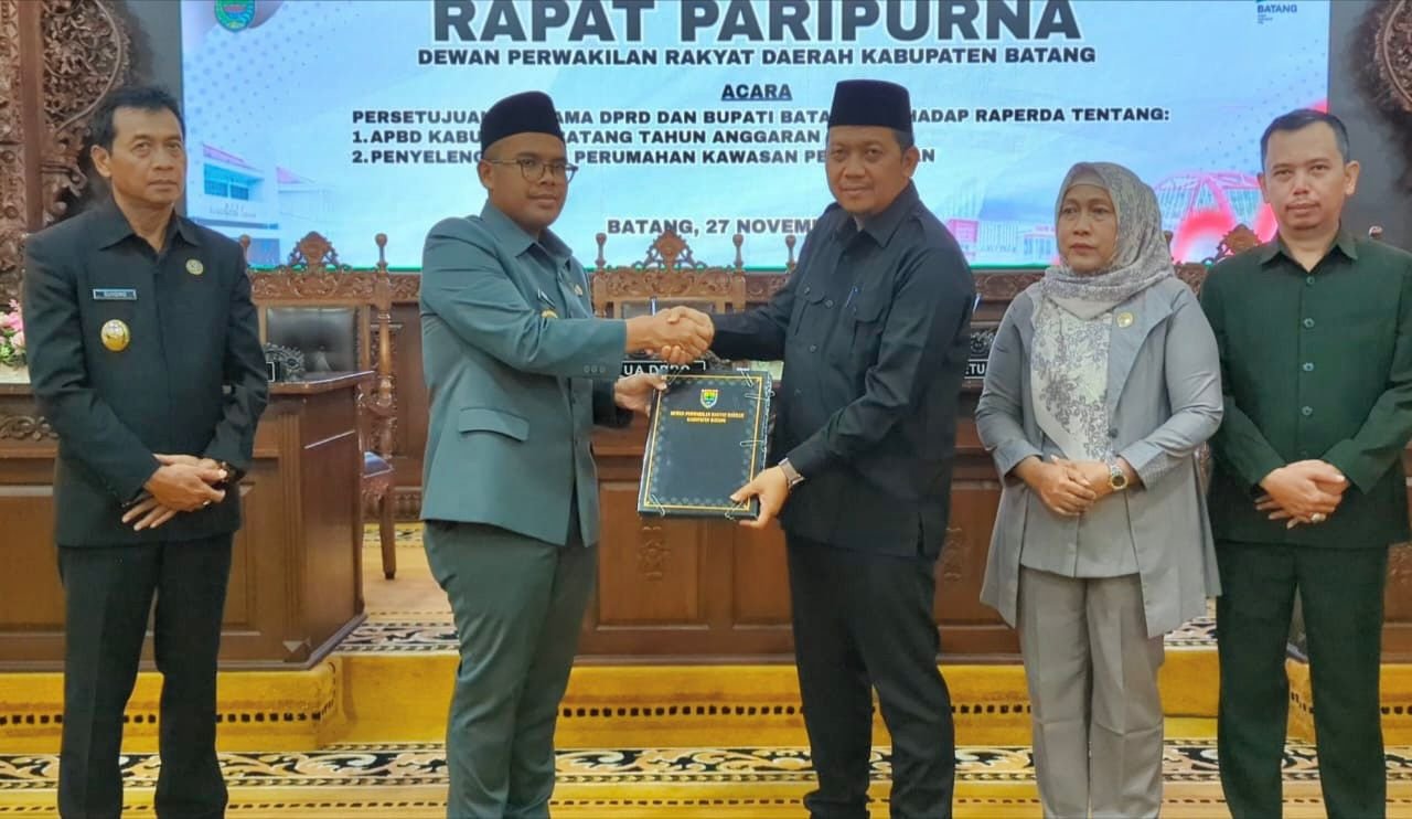 “Selain APBD, rapat paripurna juga menyetujui Raperda tentang Penyelenggaraan Perumahan dan Kawasan Permukiman. Regulasi ini penting sebagai dasar hukum operasional pemerintah daerah dalam menangani persoalan perumahan dan permukiman di Batang,” tegasnya.