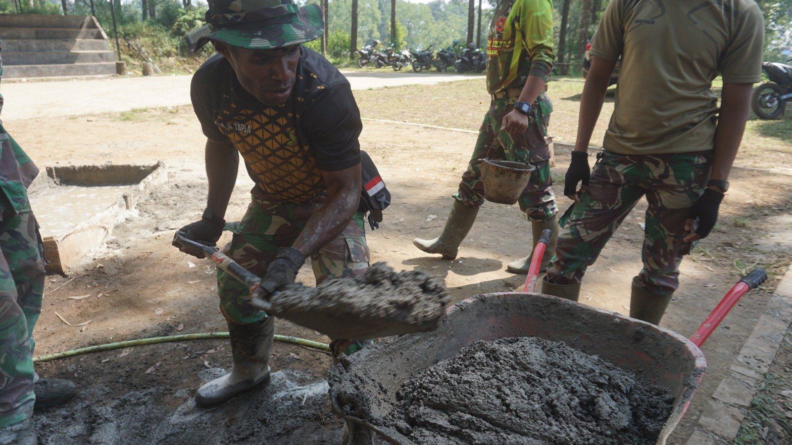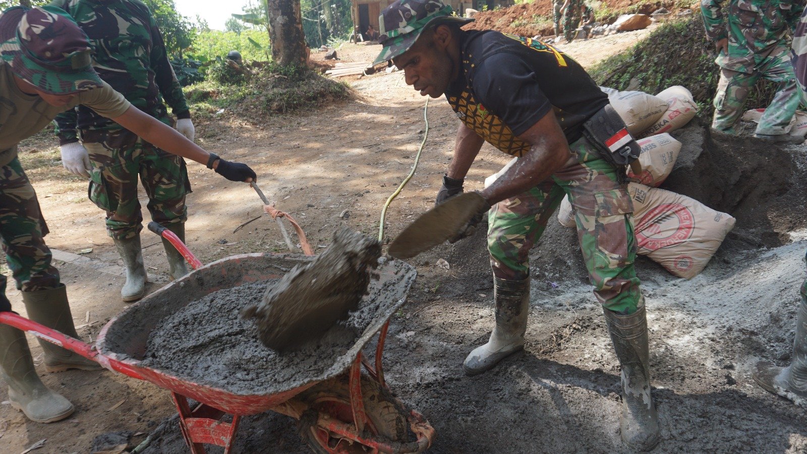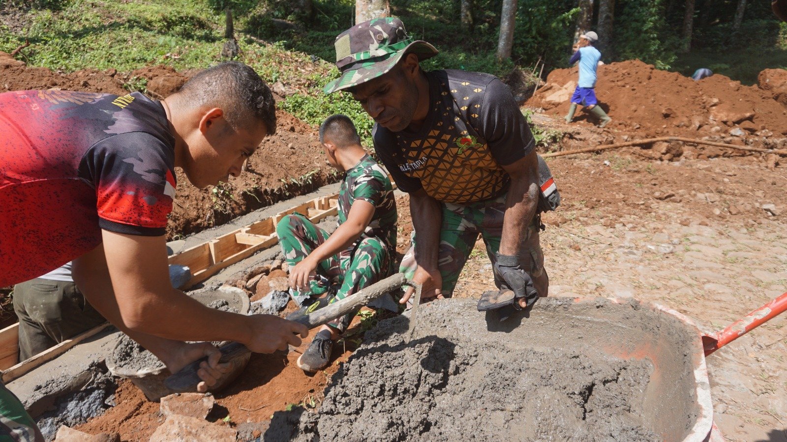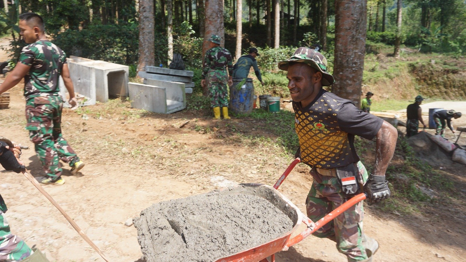 “Saya asli Papua, tentu berbeda dari segi budaya maupun kehidupan sehari hari, dari sini saya akan belajar dan mengambil pengalaman hidup di pedesaan jawa, tapi ada kesamaan Papua dengan disini, yaitu sifat gotong royong, di kampung kami sana juga ada gotong royong seperti ini dan itu bisa saya lihat saat TMMD”, ucapnya saat ditemui. Jum’at (16/8/2024).