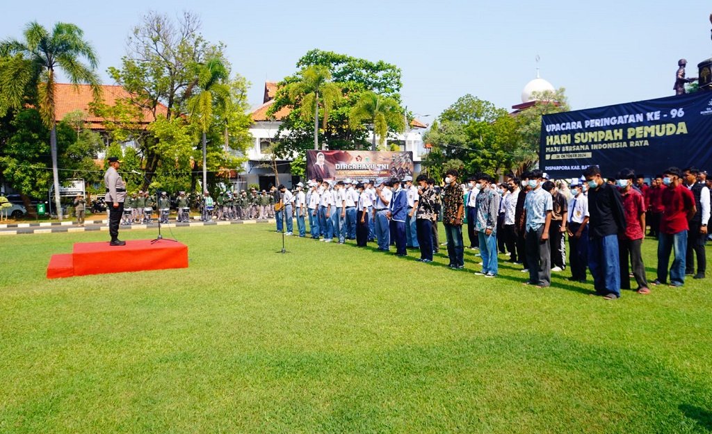 “kegiatan ini upaya pembinaan dengan cara merangkul kembali anak-anak yang mempunyai cerita masa lalu agar bangkit meraih masa depannya,” katanya saat Upacara Hari Sumpah Pemuda ke-96 di halaman Pendopo Kabupaten Batang, Senin (28/10/2024).